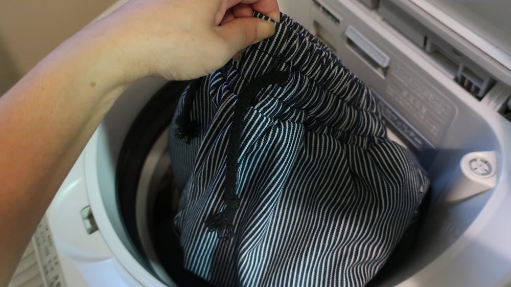 脱水後はウエスト内側のループを使用すると中の空気が循環しやすくなるため早く乾きます。四方で吊るし、風通しの良い場所で陰干しがおすすめです。乾燥機のご使用はお控えください。