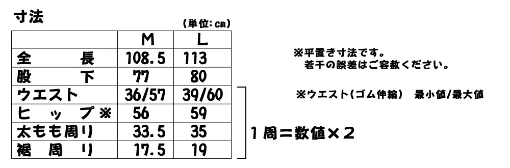 ※ターンナップの裾になっているので、裾下10cmは折り返して着用可能です。