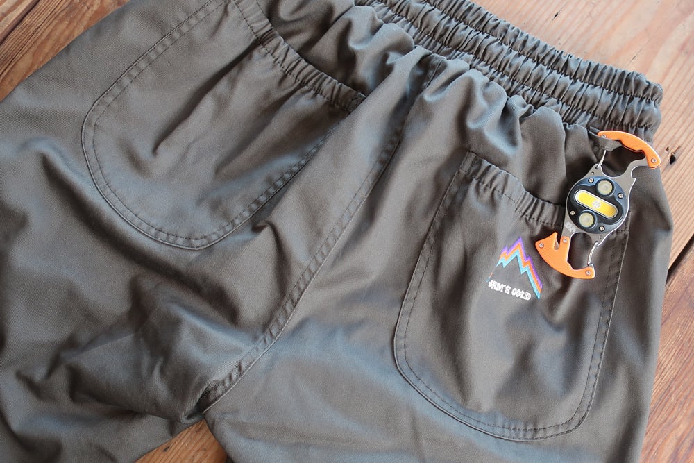 腰回りはゆったりで、足首に向けて次第に細くなるテーパードパンツを防風仕様にカスタマイズ!