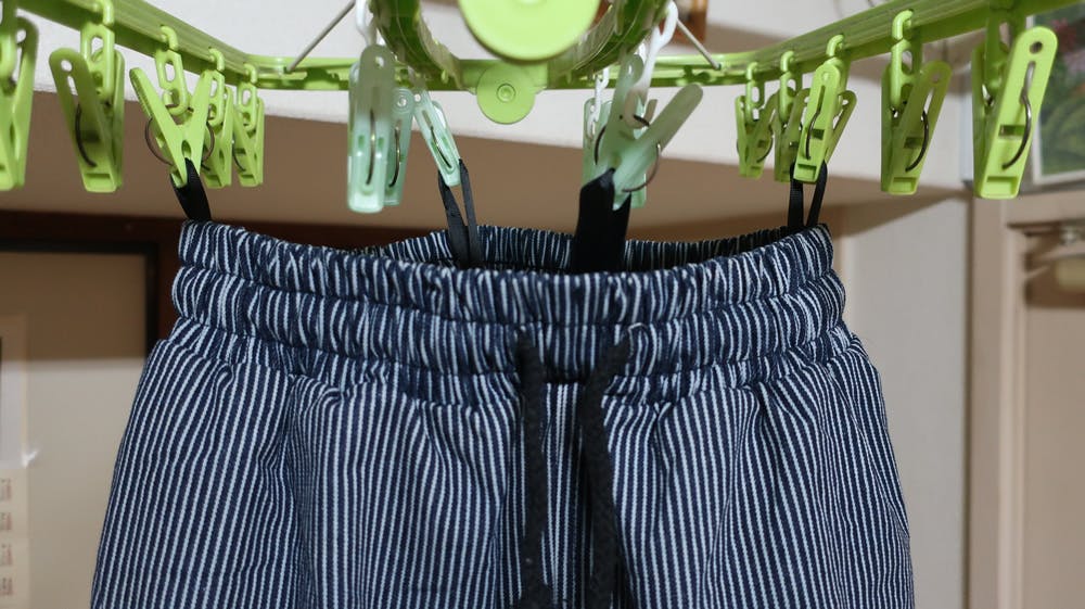 脱水後はウエスト内側のループを使用すると中の空気が循環しやすくなるため早く乾きます。四方で吊るし、風通しの良い場所で陰干しがおすすめです。乾燥機のご使用はお控えください。