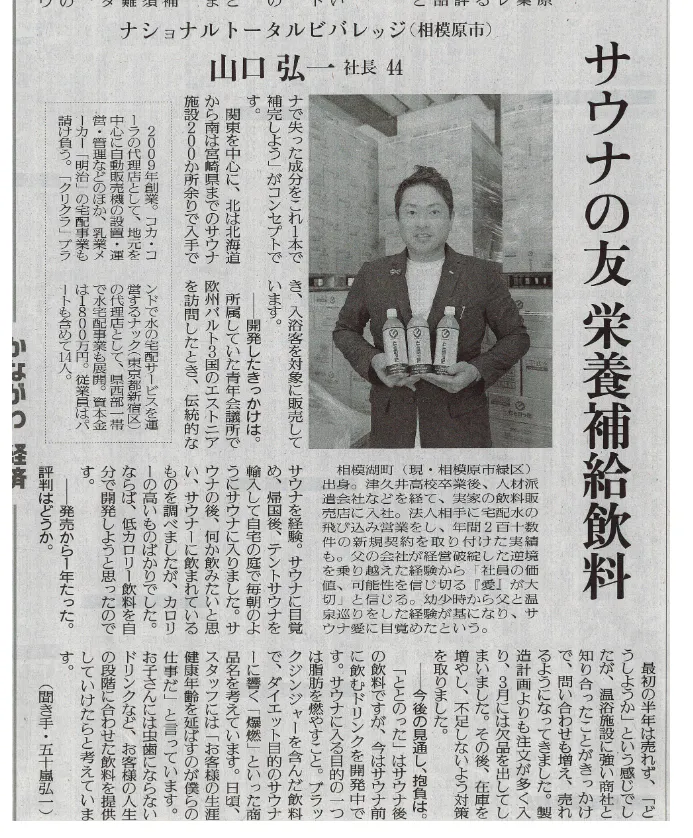 サウナの栄養補給飲料開発では、新聞をはじめ各種メディアにも取り上げられています。