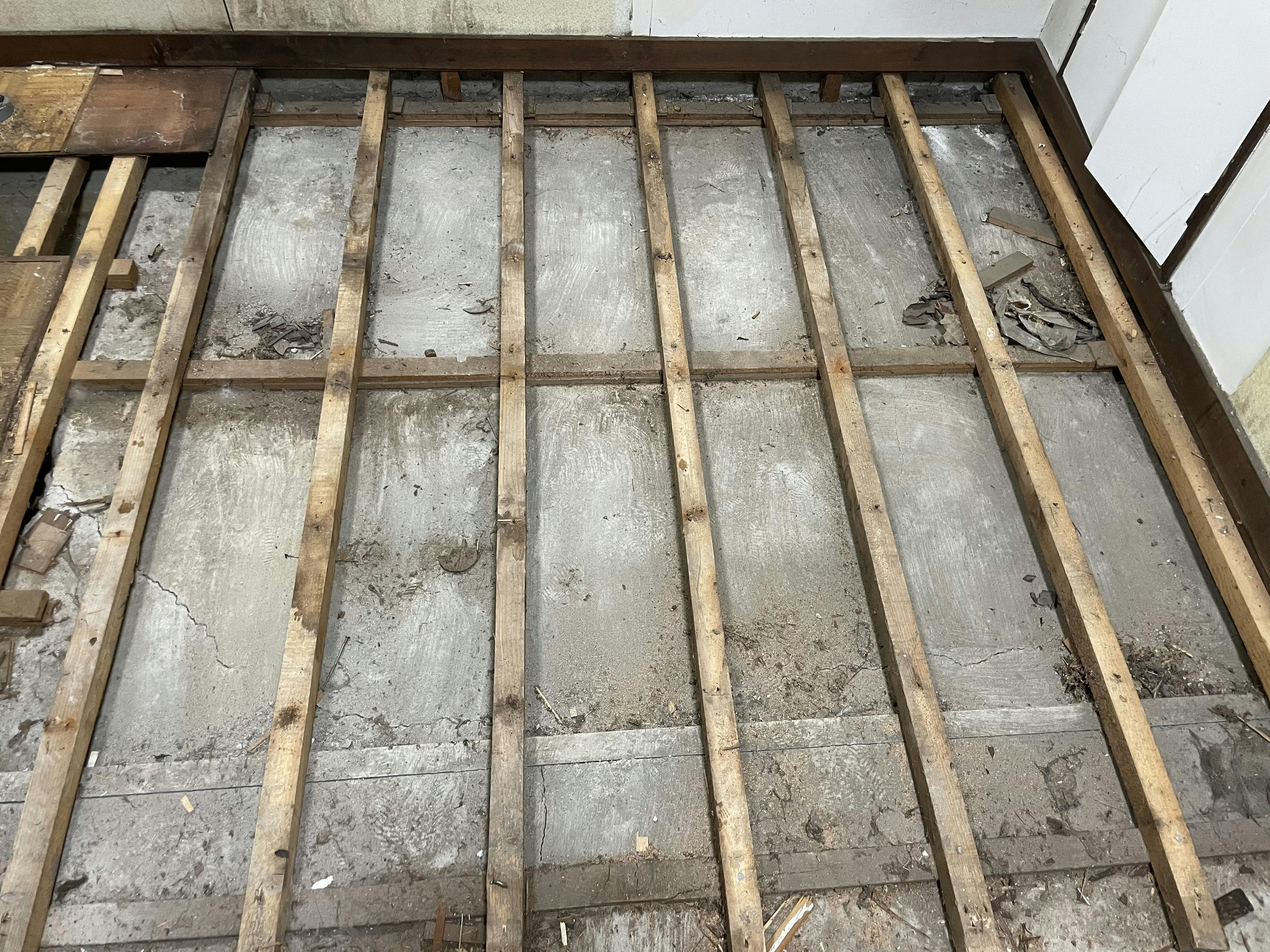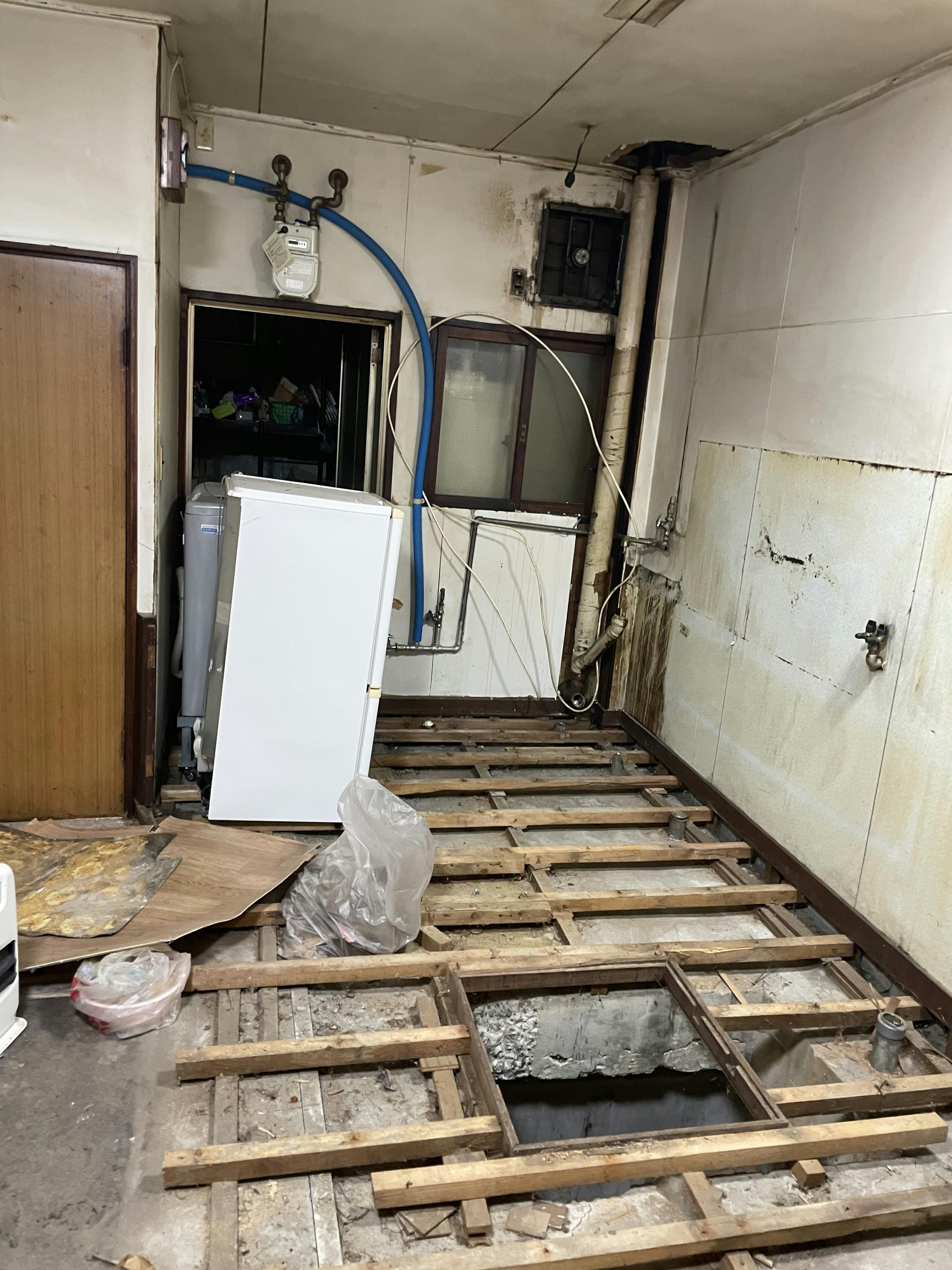 床を剥がして、見えてきたのはコンクリの床。