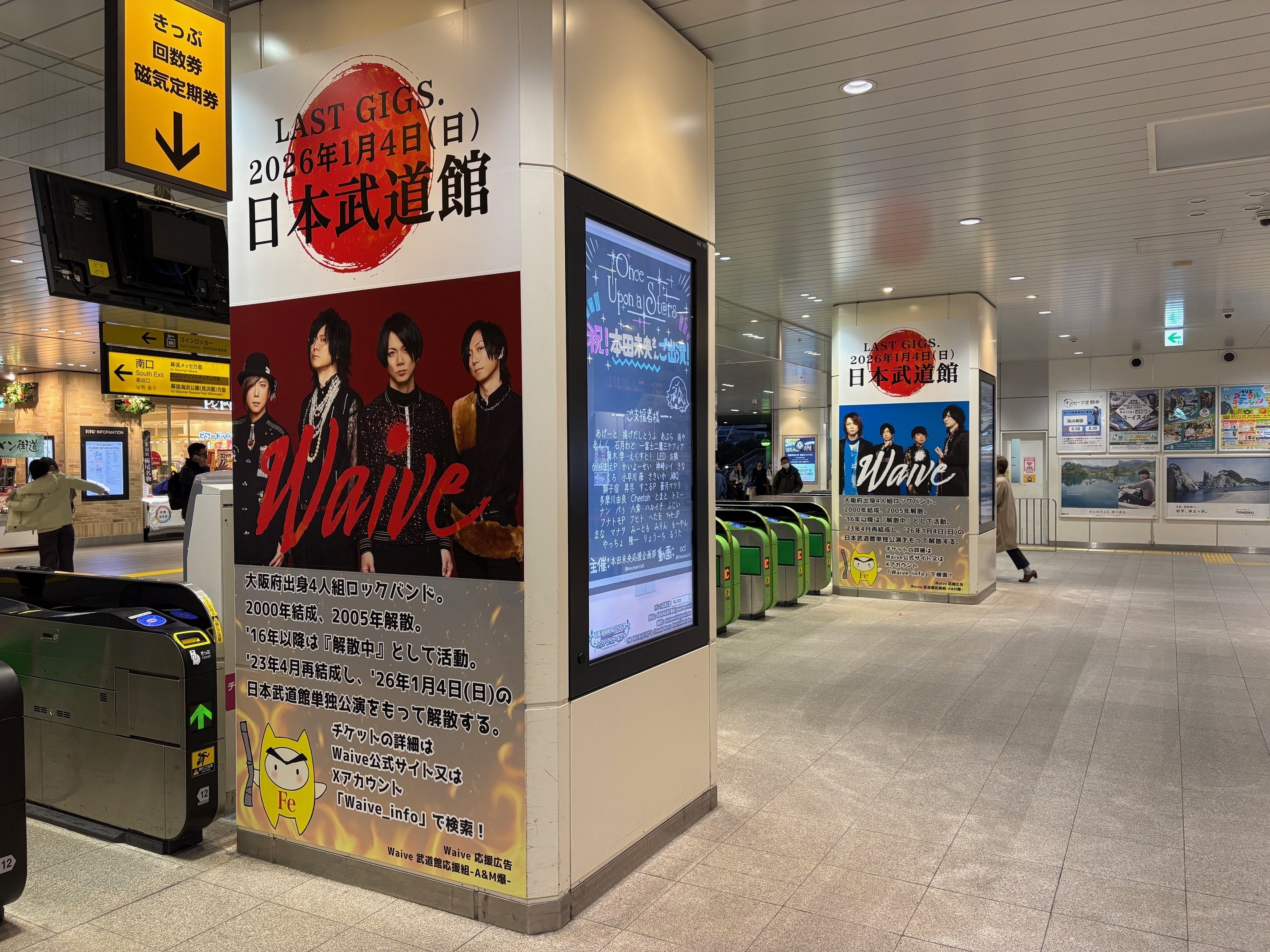 2025/12/26 13:58みなさまこんにちは!イベントに行かれた方、またSNSでチェックしていただいた方はご存知かと思いますが、先日行われたCROSS ROAD Festでのライブ大反響を呼んでましたね!今までWaiveを知らなかった方々もイベントを通してWaiveを知っていただけてとても嬉しいですꕤそして、最寄り駅、海浜幕張駅の一番目立つであろう改札前の柱2本4面に応援広告を出させていただきました!!ご支援していただいた方々、応援してくださった方々、SNSでチェックしてくださった方々、応援メッセージやお褒めのお言葉をくださった方々、改めましてありがとうございました(*.ˬ.)"もうあと数日で2026年1月4日(日)日本武道館公演を迎えます。ファンの方それぞれにいろんな想いがあるかと思いますが、あとはみなさん悔いの残らないよう楽しむのみです!!!応援ありがとうございました! もっと見る
