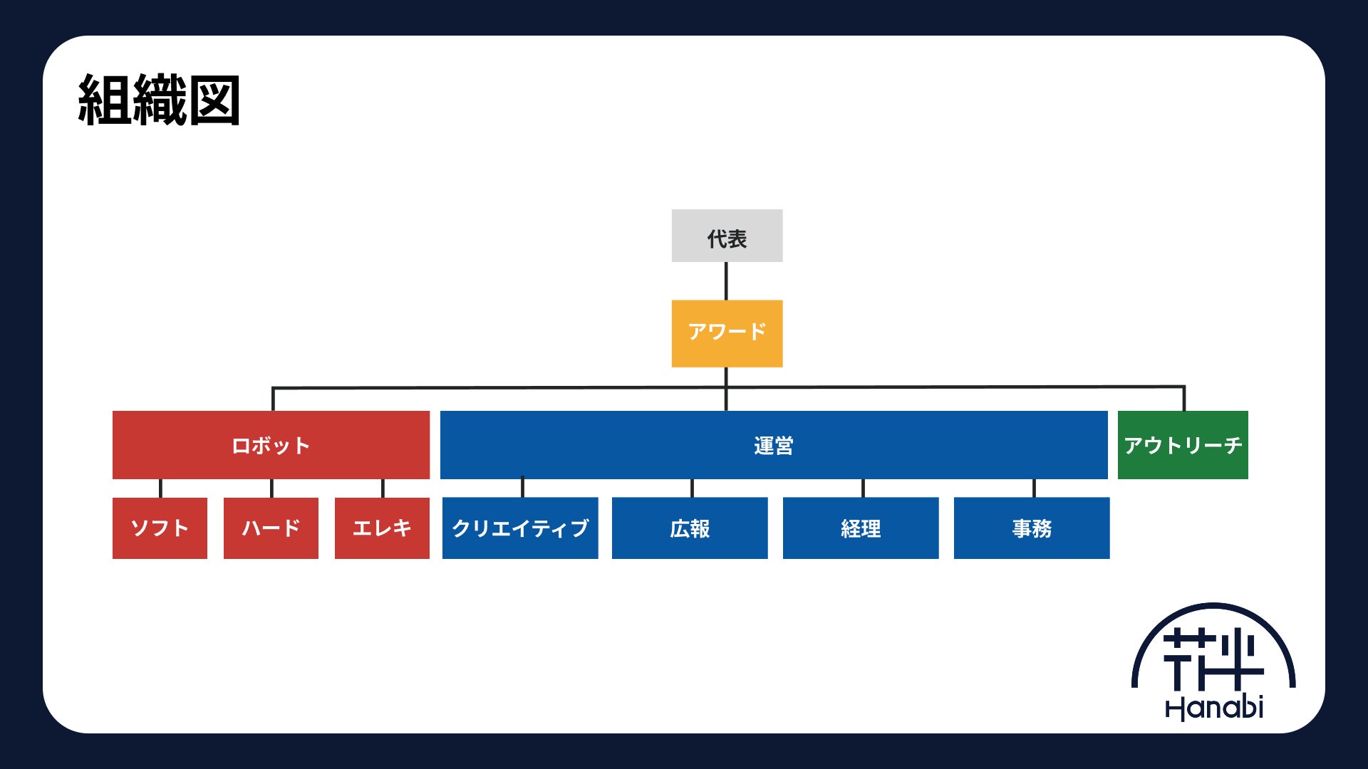Hanabiではロボット班、運営班、アウトリーチ班に別れチーム運営を行っています。今回はその中でも特に、ロボット班の活動に注目して紹介させていただこうと思います。