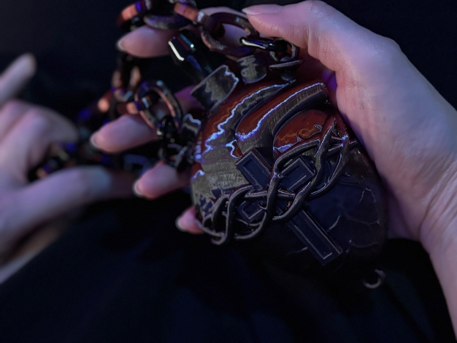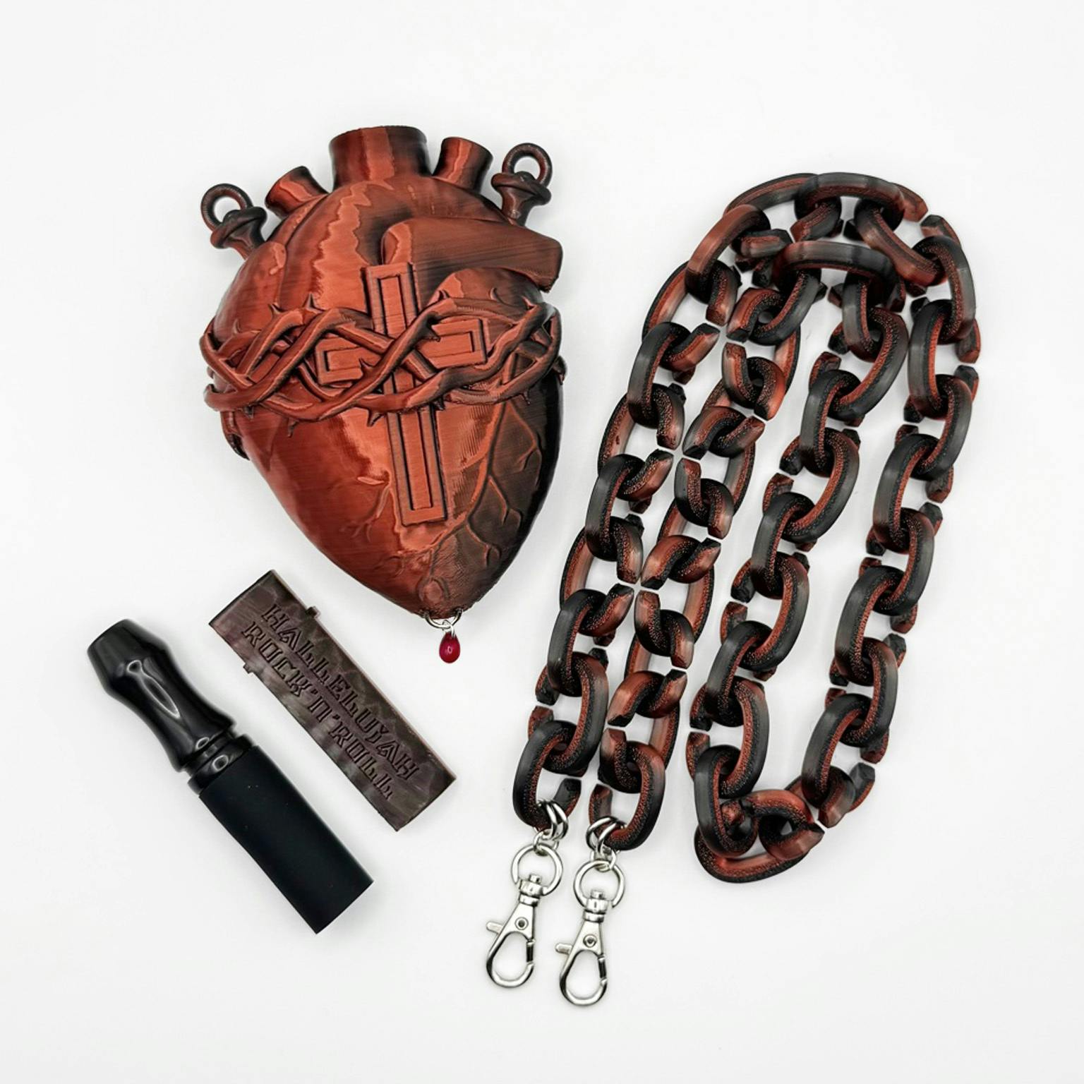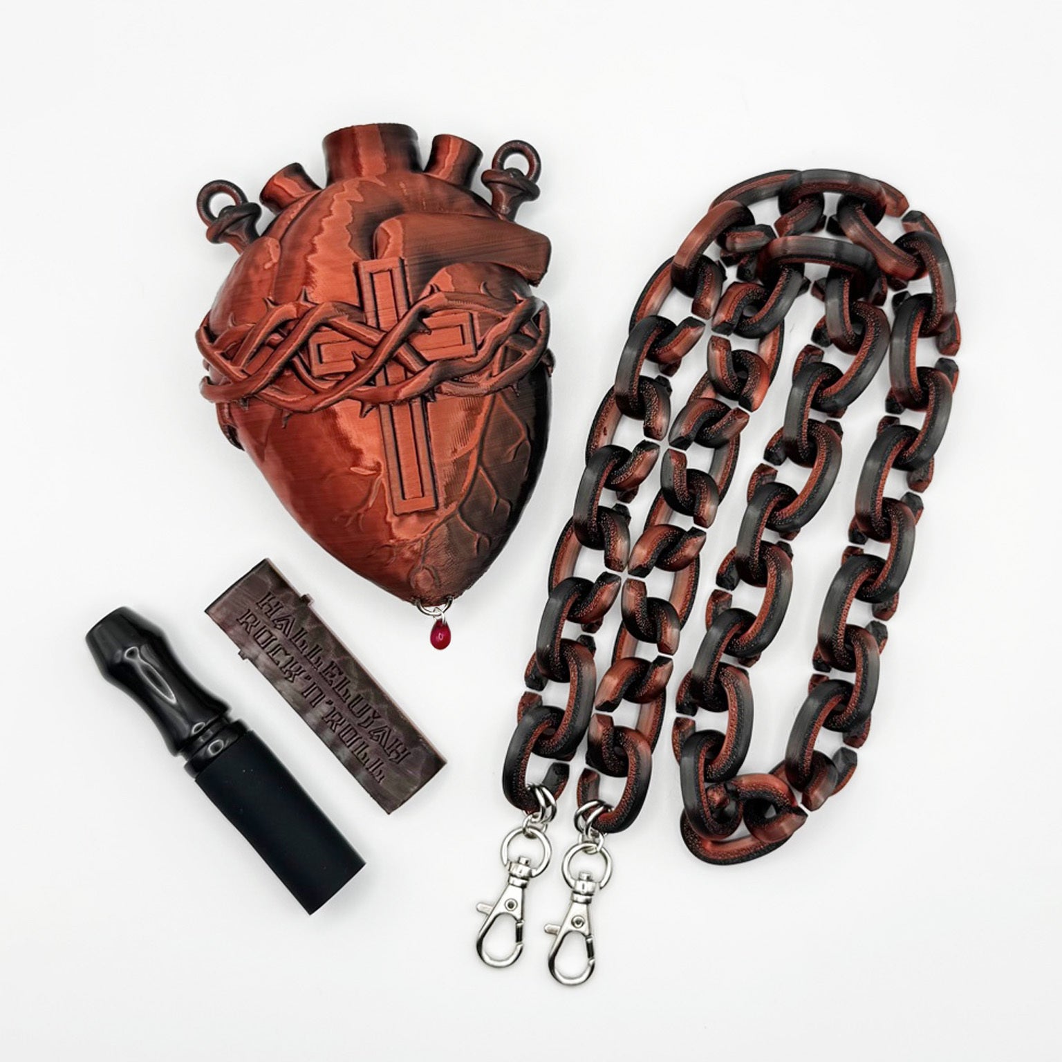 今回のクラファンのリターンのメインであります「聖★ヴァイスオルガン 」もそれにのっとってリアルな心臓のサイズに近い大きさで再現しました。ネックレスの長さも実際の心臓あたりにし厨二病の皆様に刺さる面白いデザインで、SNSなどの投稿でもオシャレな1枚となるのではないかと思っています。