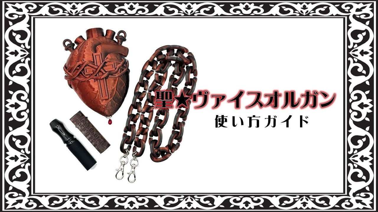 緒方さんのワンオフペイント「聖★ヴァイスオルガン」本体、 お手玉柄A5クリアステッカー、チェーン(ブラッディベルベット)