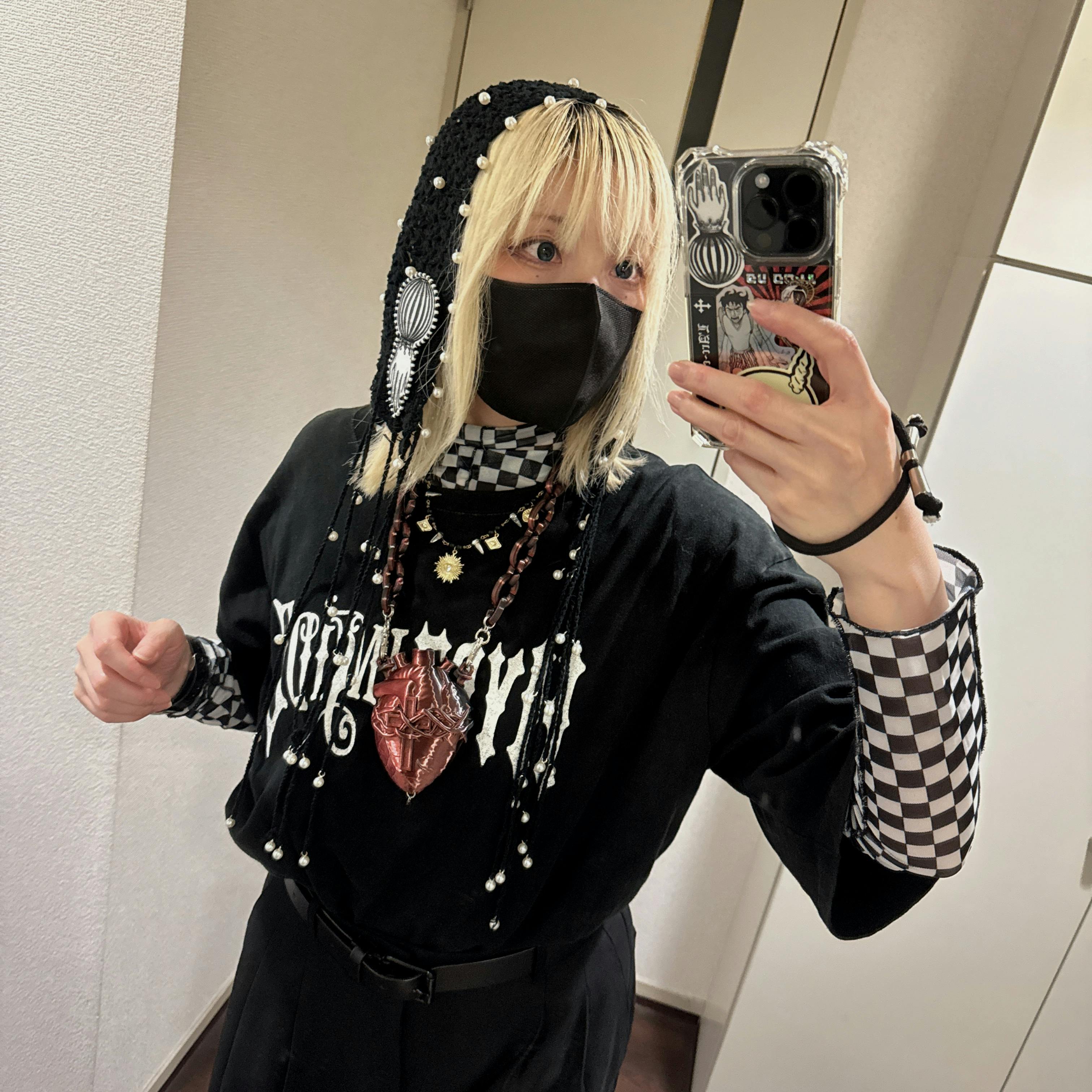 こんにちは。やはり着用している画像も見たいですよねサイズ感の参考にハレロクの着画をば…実際の人間の心臓の平均サイズにしているのでちょうど良く胸に収まるサイズ感この画像はチェーンを少し短くしネックレスとして着用しています。実際にシーシャを吸うと時はもう少し長さがあった方が吸いやすいので74cmがデフォルトの長さになってます。ジョイント式で簡単に外せるチェーンパーツでお好みの長さで使えますし、手首に掛けられる程度の短さが良いという感じにも調節できますよ!他にもよく見てみたいパーツなどありましたらお気軽にSNSなどで要望をくださいね