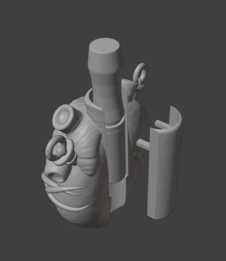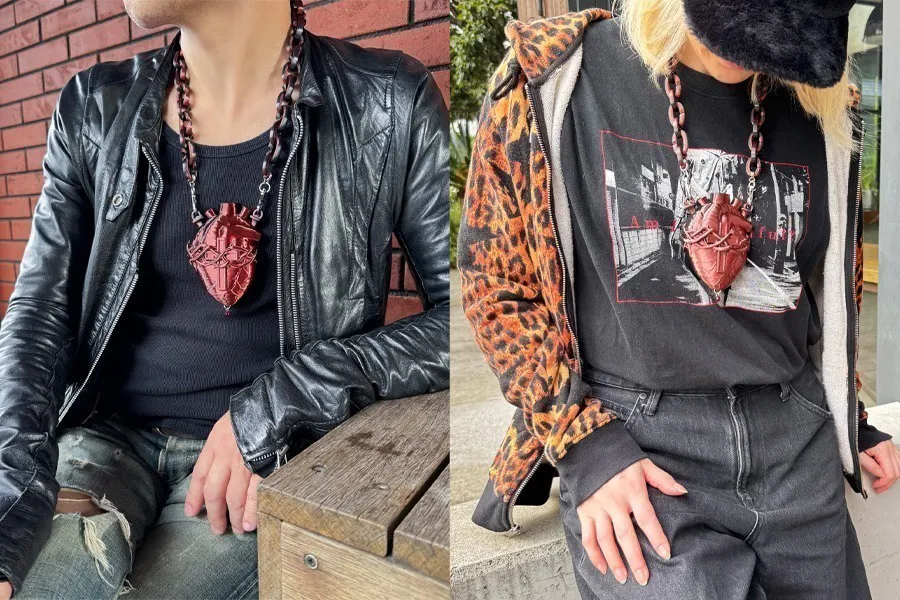 胸から吊るす“心臓”のマウスピース。それは機能を超えて、持つ人の存在そのものを印象づけるための異物です。