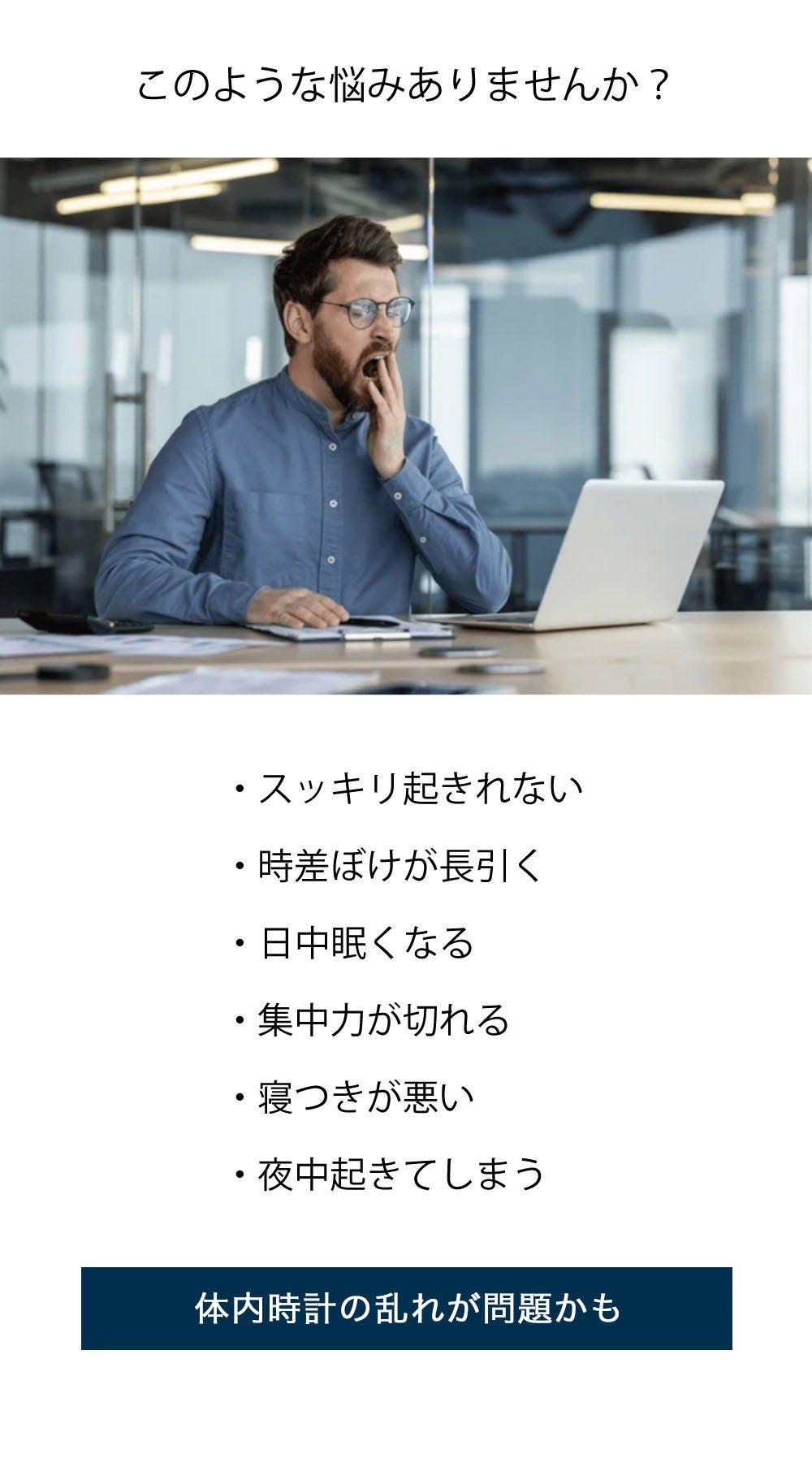 メガネ型だから、いつでもどこでも手軽に。光セラピーでサーカディアンリズム(体内時計)の調整をサポート!