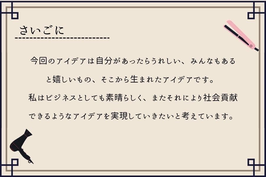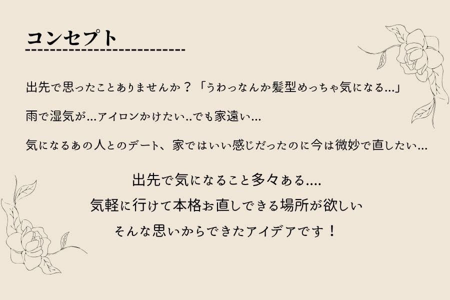 全国展開を想定したアイデアです! 無人ヘアセットスペースを設置し、いつでもどこでもおしゃれできる社会を作りたい!