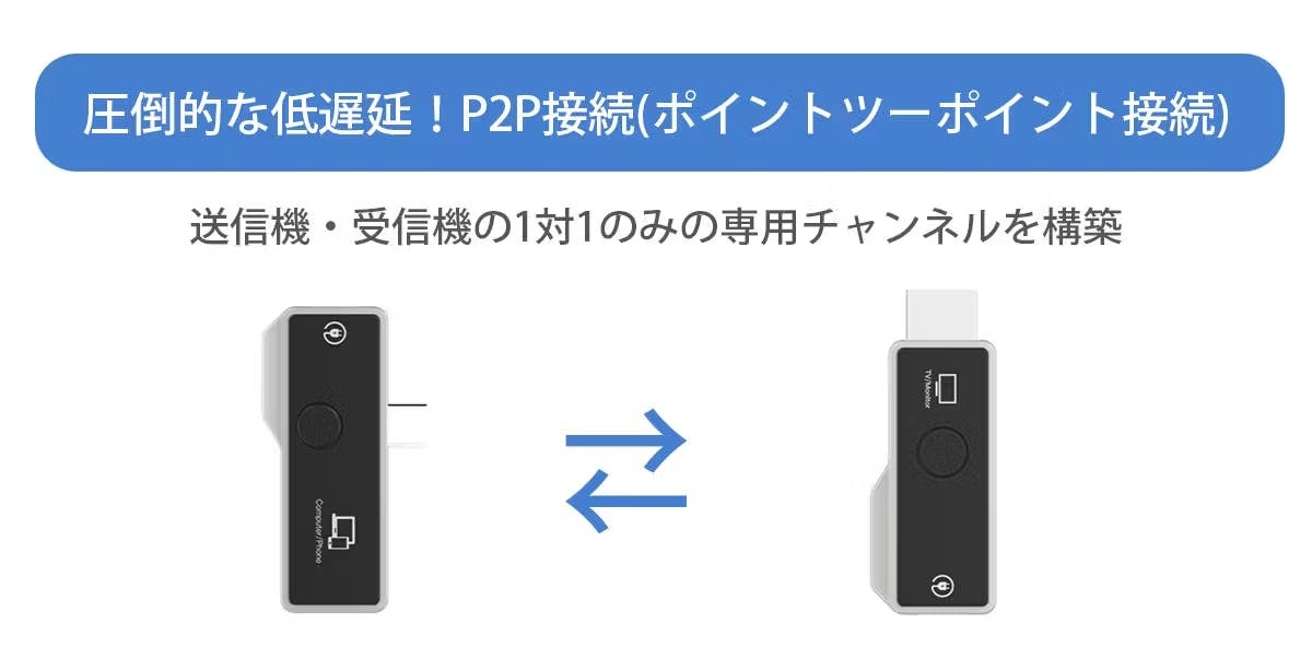 これにより送受信機間で専用のチャンネルが構築されるのでわずか0.1秒の低遅延でスムーズな映像転送が可能なのです。