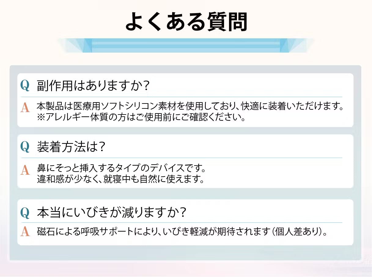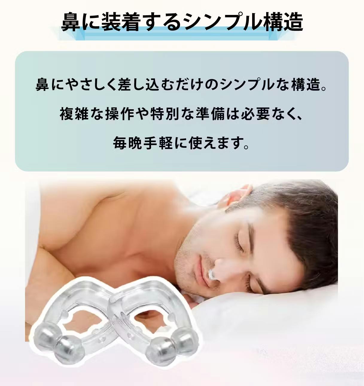 自然な呼吸をサポートすることで、睡眠中のいびきをやわらげます。
