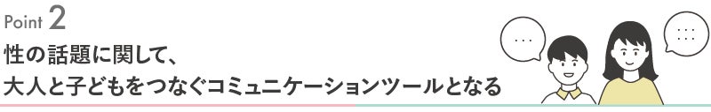 例えば、幼児向けのコンテンツでは、助産師さんによる監修のもと、幼児期から知っておきたい性の知識・伝え方のノウハウを、親しみやすいイラストで、わかりやすくお伝えします。