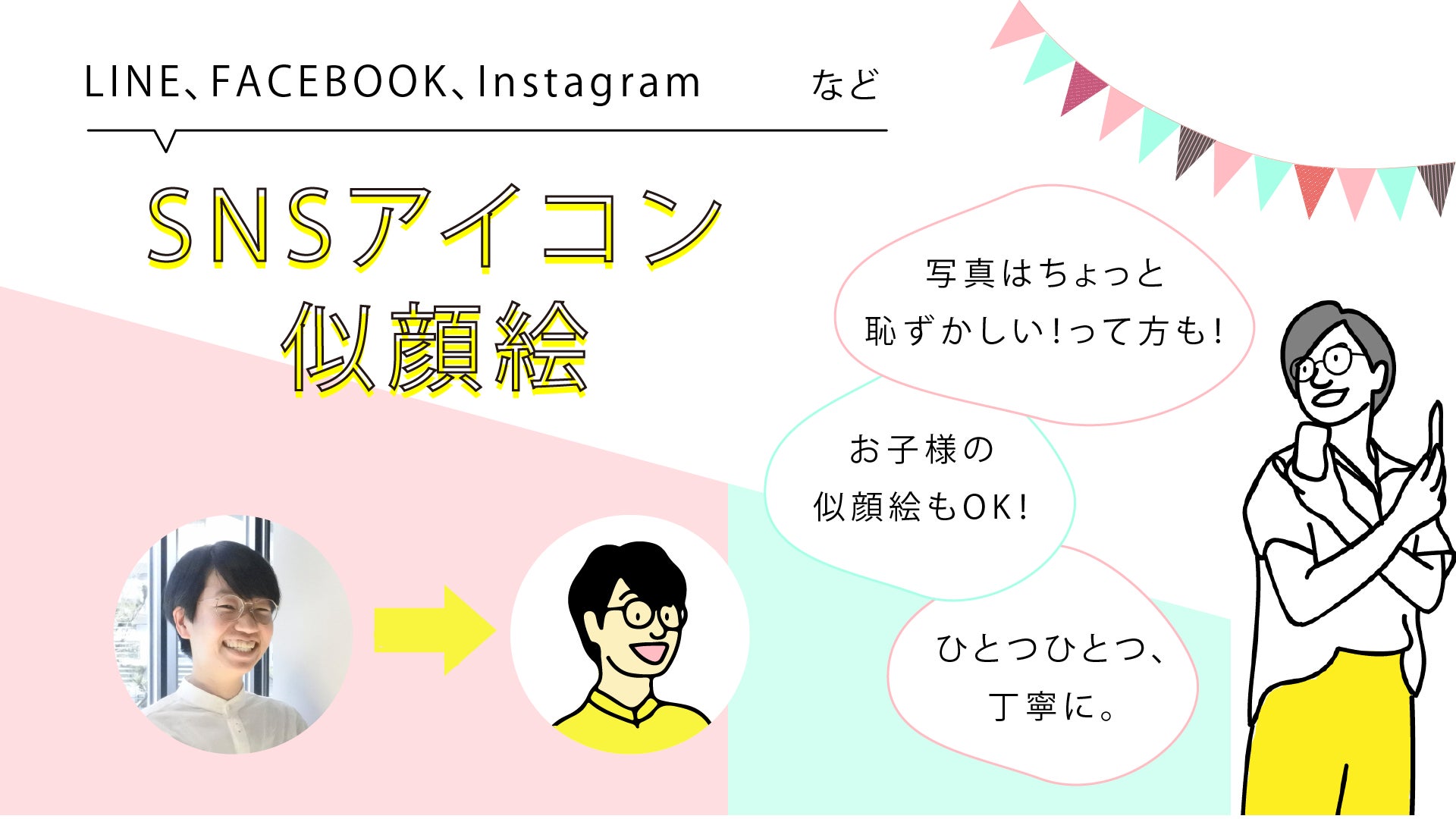 SNS用(Facebook、Instagram、LINE、Twitterのいづれかひとつ)プロフィールに使っていただける似顔絵を作成します。ご自身でもご友人でも、お好きなお写真をデータでお送りください。