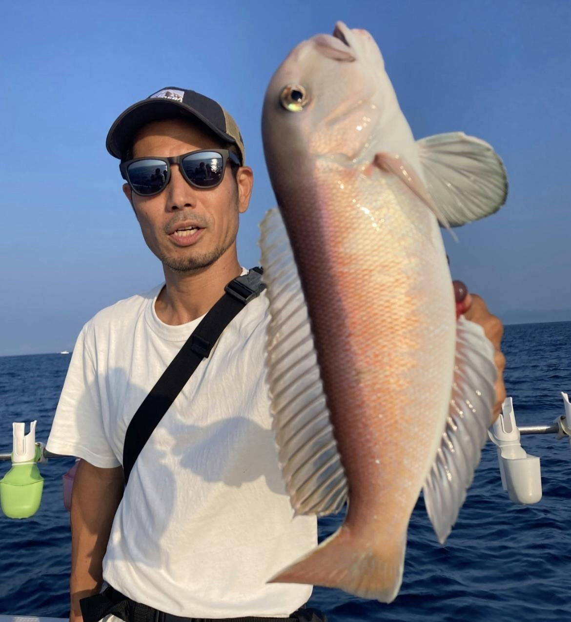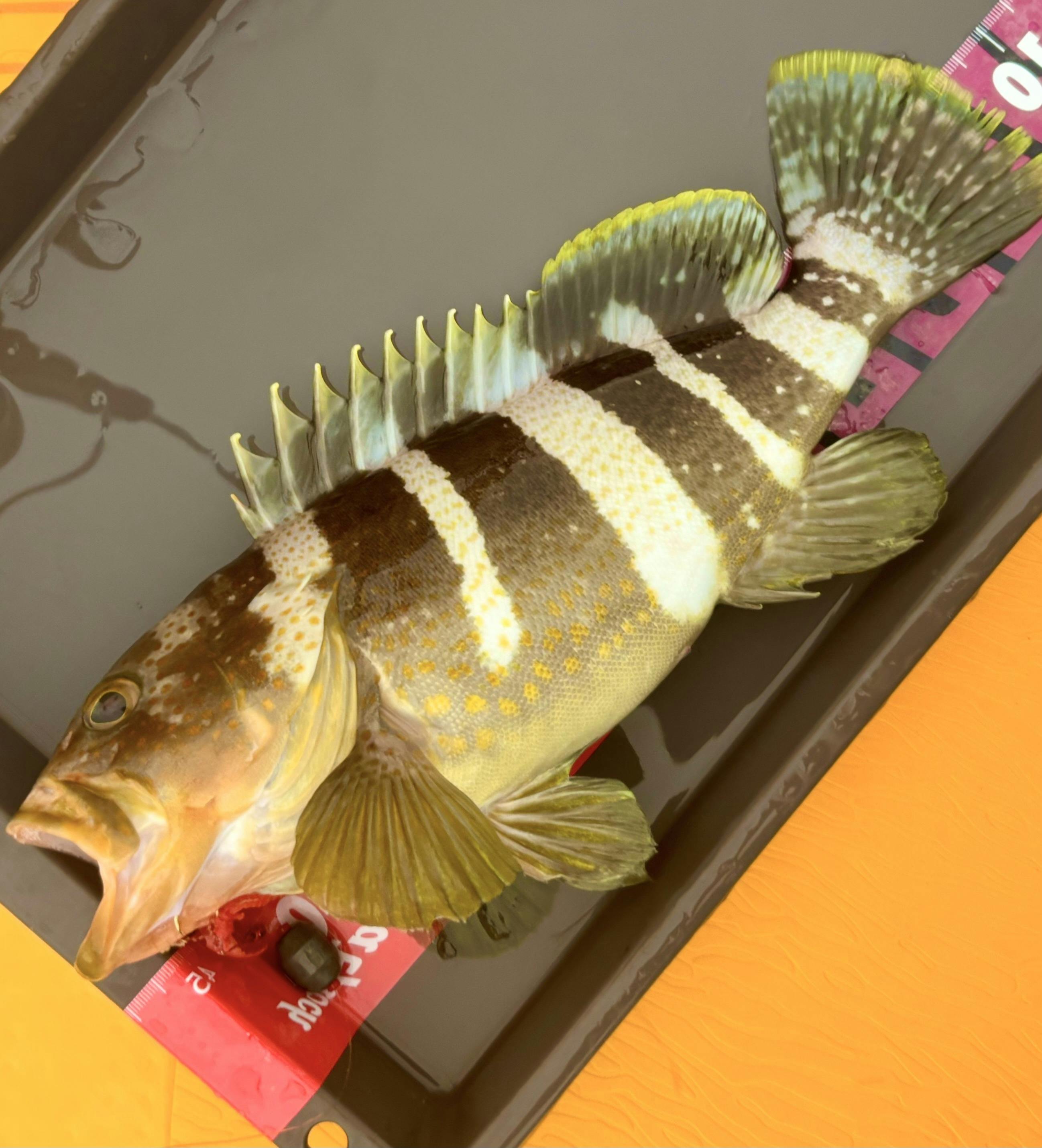 その後、仕掛けを付け直してすぐ35cmのアオハタが釣れました。