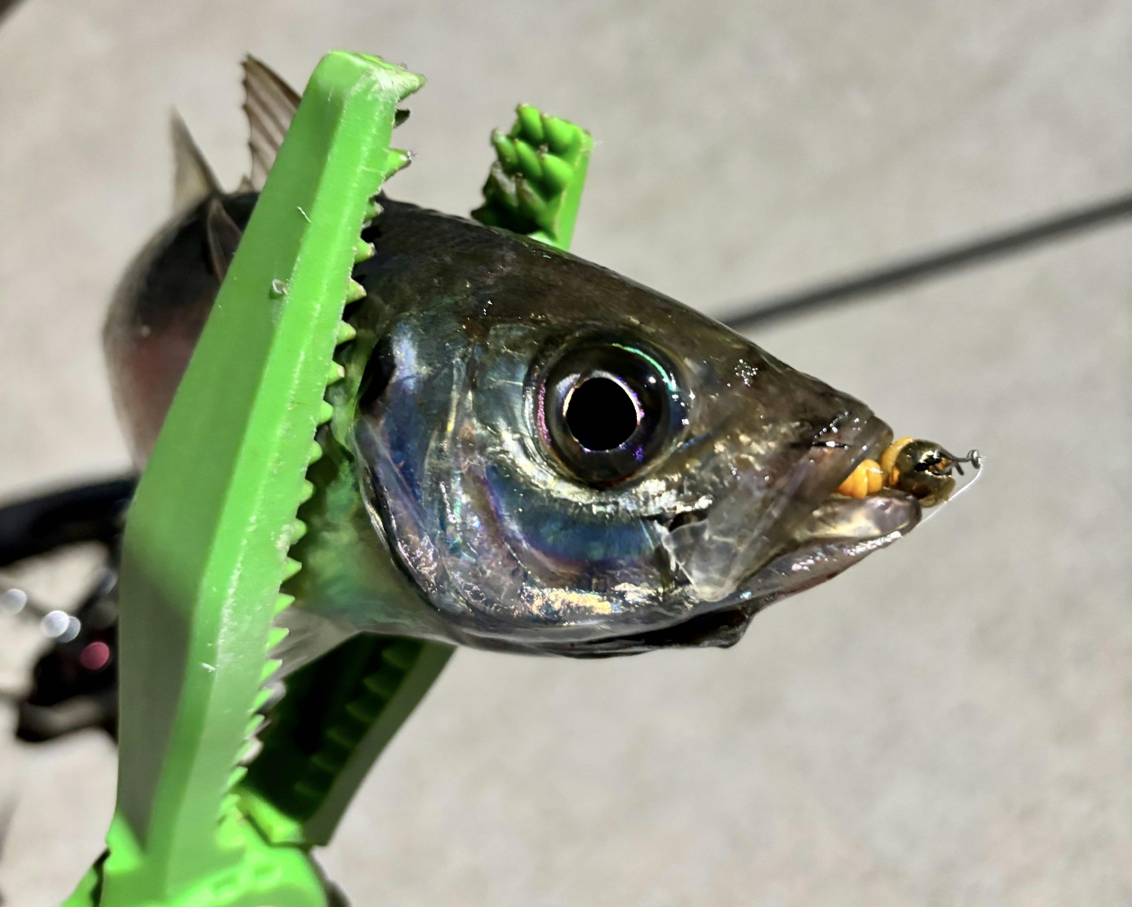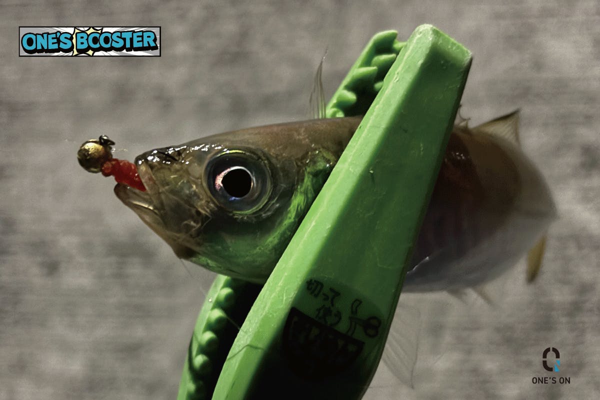 海面に漂うようにワームをセットし《 ONE'SBOOSTER 》塗ってサヨリゲット!