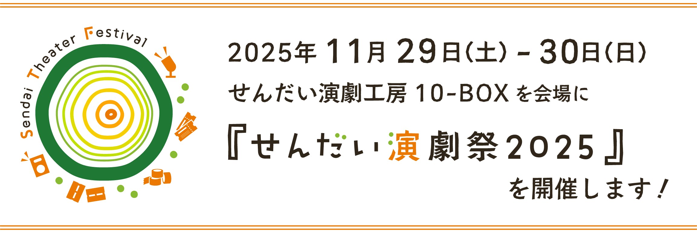 【2025年11月開催予定】 仙台の地に根ざし、世代や団体を越えて人と人がつながる“この土地の演劇祭”を立ち上げます。 『せんだい演劇祭2025』 日時:11月29日(土)-30(日) 会場:せんだい演劇工房10-BOX(宮城県仙台市若林区卸町)