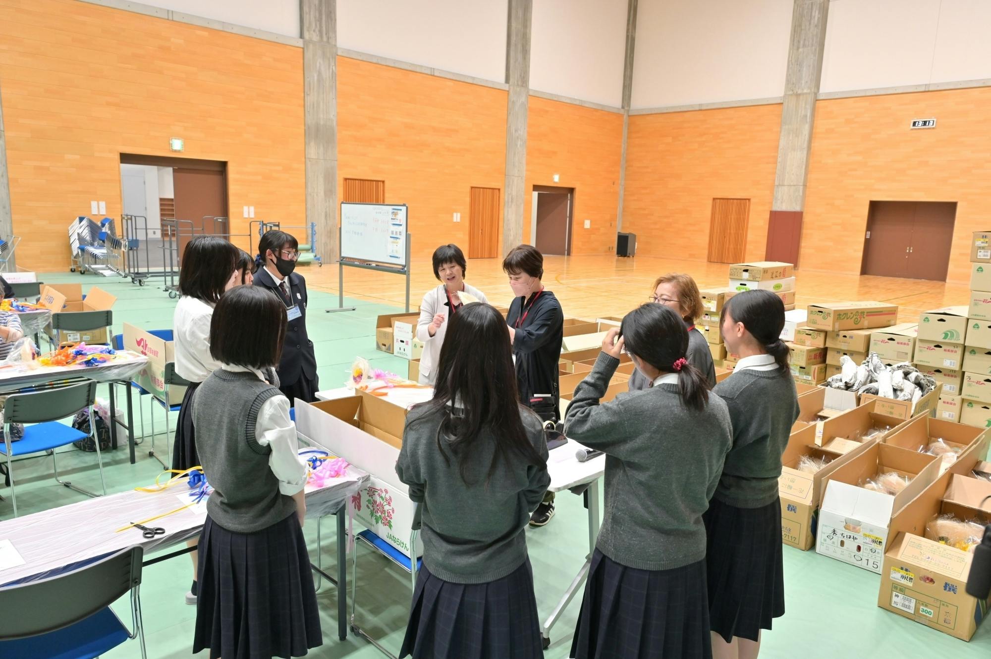 この準備は、当日をスムーズに進めるために、そしてたくさんのブーケを作るために、とても大事な工程のひとつです。日本フラワーデザイナー協会の滋賀県支部の支部委員を中心に、着々と準備が進められました。