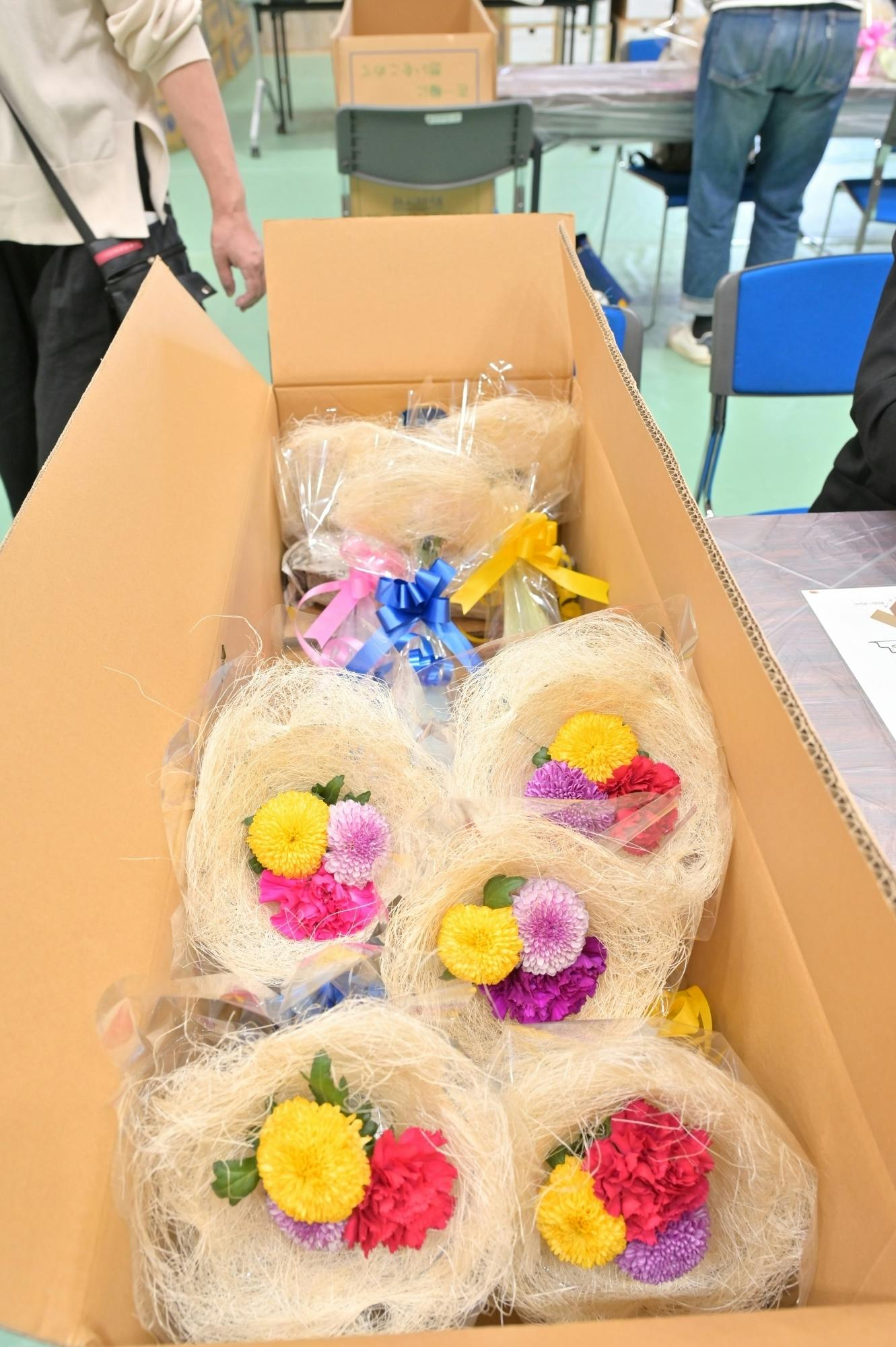 自分の作ったビクトリーブーケが選手の手に渡ることを楽しみにしつつ、手にしたビクトリーブーケも大事に箱詰めして、その想いとともに競技会会場へと届けられました。