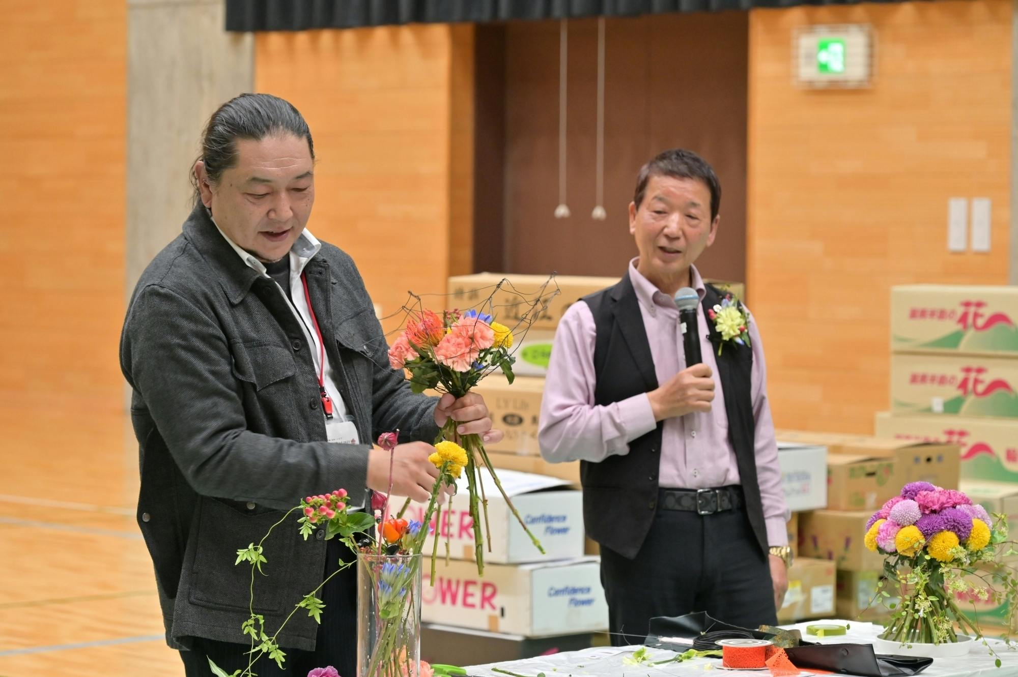 制作2日目は、休憩時間にNFDのことについてや、どうしてフラワーデザイナーの道を歩んだのか?という紹介とあわせて、デモンストレーションを披露しました。