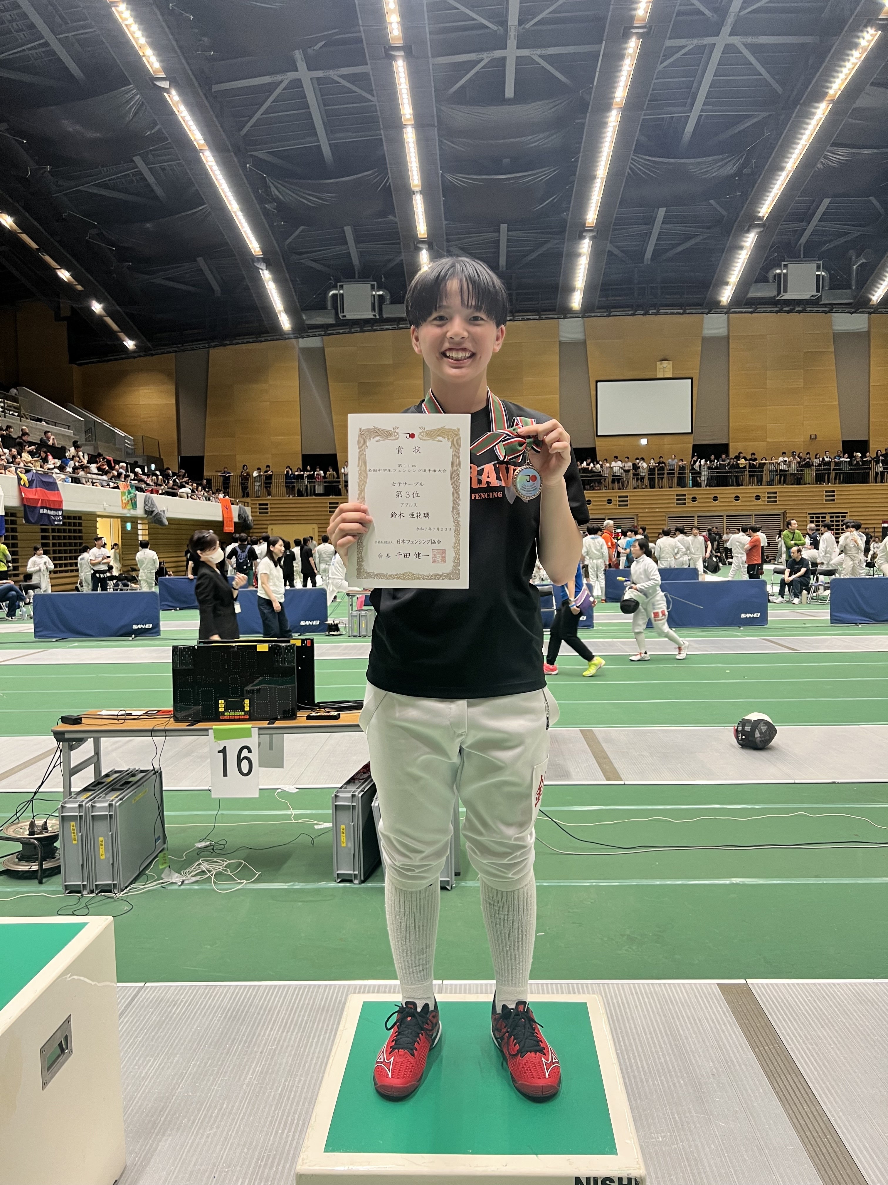 初めて参加した大会ではサーブルを始めてわずか1ヶ月でしたが、見事3位という成績を収めることができました。そこからサーブルの魅力に魅せられ、大好きだったバレーボールから離れフェンシングに絞って活動していく決心をしました。その後、全国中学生大会で全国3位になり、12月の国際大会に向け日々頑張って練習に取り組んでいるところです。