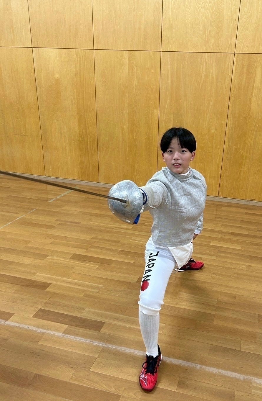 初めて参加した大会ではサーブルを始めてわずか1ヶ月でしたが、見事3位という成績を収めることができました。そこからサーブルの魅力に魅せられ、大好きだったバレーボールから離れフェンシングに絞って活動していく決心をしました。その後、全国中学生大会で全国3位になり、12月の国際大会に向け日々頑張って練習に取り組んでいるところです。