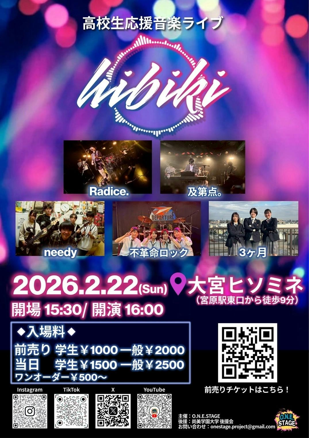 2026/01/10 00:00応援してくださっている皆様、いつもありがとうございます!このたび、高校生応援音楽ライブ“hibiki”に出演してくださるバンドが決定し、あわせてフライヤーも解禁されました!◾︎出演バンド(50音順)・及第点。・3ヶ月・不革命ロック・Radice.・needy当日5組の高校生バンドによるパフォーマンスをお楽しみに!O.N.E.STAGE公式SNSでは出演バンドの紹介も投稿しておりますのでぜひチェックしてみてください。より良いイベントを作れるよう、スタッフ一同準備を進めております。当日まで暖かく見守っていただけると幸いです。引き続きクラウドファンディングのご協力、よろしくお願いいたします! もっと見る