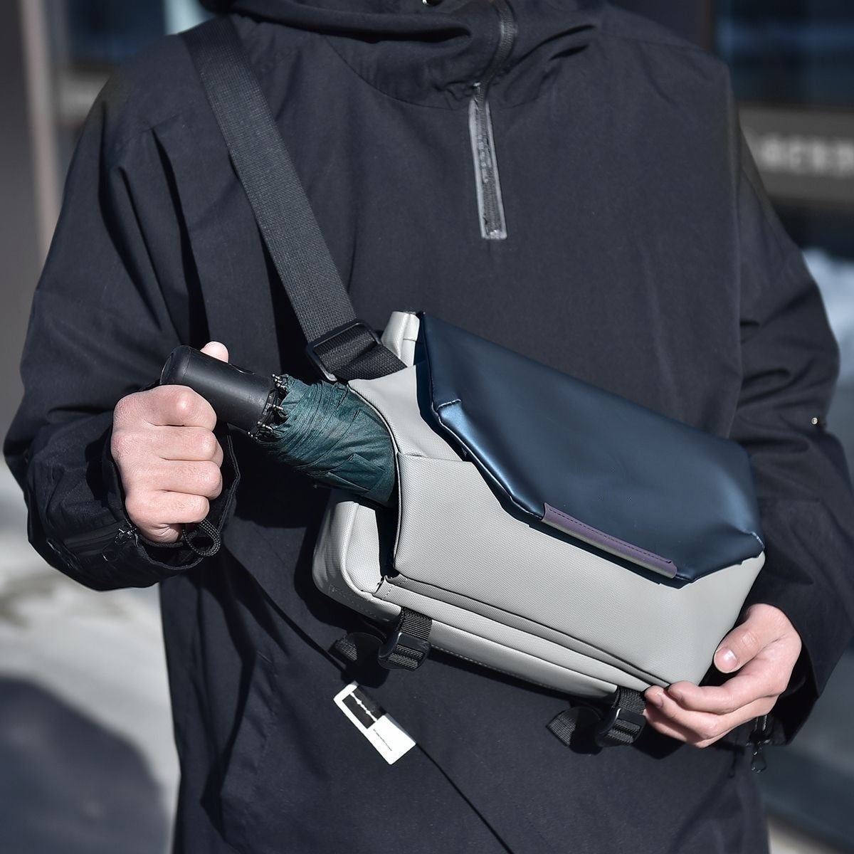 朝の通勤途中、にわか雨。折りたたみ傘を差しながら、鞄の中のタブレットが気になる。そんな時に限って、バックルが硬くて片手では開けない。