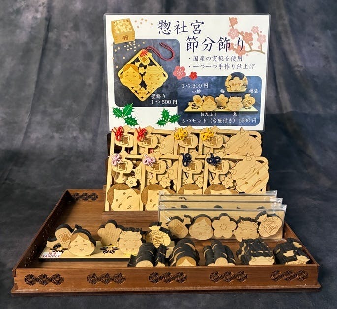 2026/02/06 08:06皆様、お気に入り、ご支援ありがとうございます。残り一週間を切りました。ラストスパートもたくさんの人にこのプロジェクトを見ていただき、fuie(フイエ)を知ってもらえると嬉しいです。2月3日(火曜)は節分でした。福岡県中間市にある惣社宮さんで弊社で作った節分飾りを販売させていただきました。豆まきが行われるのでこの日はいつもよりたくさんの参拝者が来られるとのこと。今回、惣社宮さんに協力いただき、初めての販売でしたので数は少なめに用意しました。壁飾りは完売し、どうしても欲しい方がいたようで、追加納品へ行きました。置物もいくつか残っている程度でした。手に取って下さった方々、そして惣社宮さんへ感謝申し上げます。参拝者の方々へ福が訪れますようにと願いを込めてデザイン、加工しました。想いが届いていると嬉しいです。 もっと見る