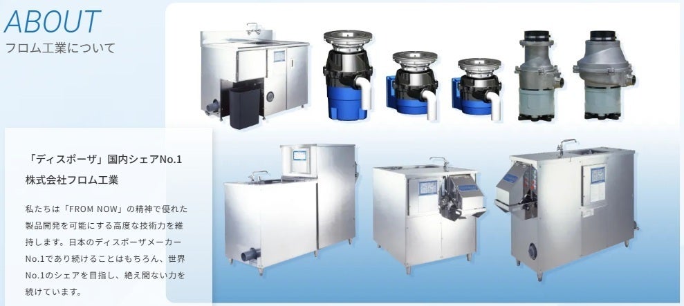 株式会社フロム工業は、長年にわたり家庭用、業務用ディスポーザの製造を通じて、安全性・耐久性・清潔性にこだわった技術力を培ってきました。