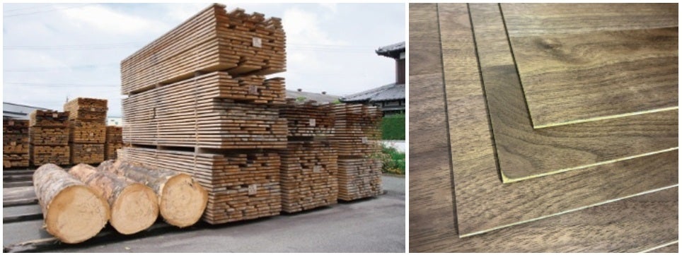 家具の町として名高い、福岡県大川市から取り寄せた突板を採用しました。