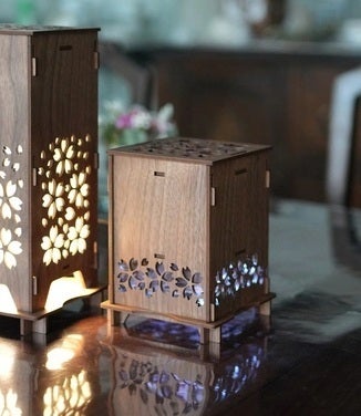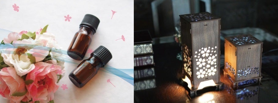 付属の桜型のアロマウッドにお持ちのお好きな香りのアロマオイルを数滴たらしスイッチON。