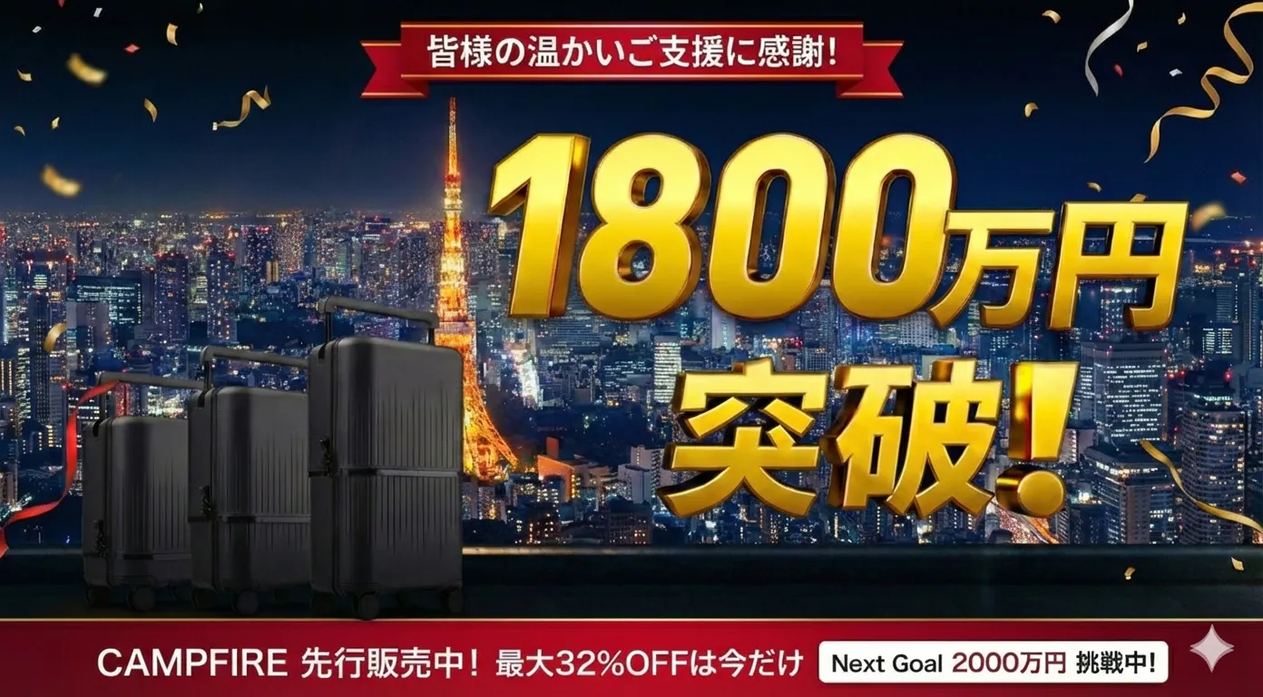 もし周りに「スーツケースのサイズで悩んでいる」「どのスーツケースを買おうか迷っている」というご友人やご家族がいらっしゃいましたら、ぜひ**「今なら最安値で、しかもすぐ届くよ!」**と、このプロジェクトをシェアしていただけますと大変心強いです!