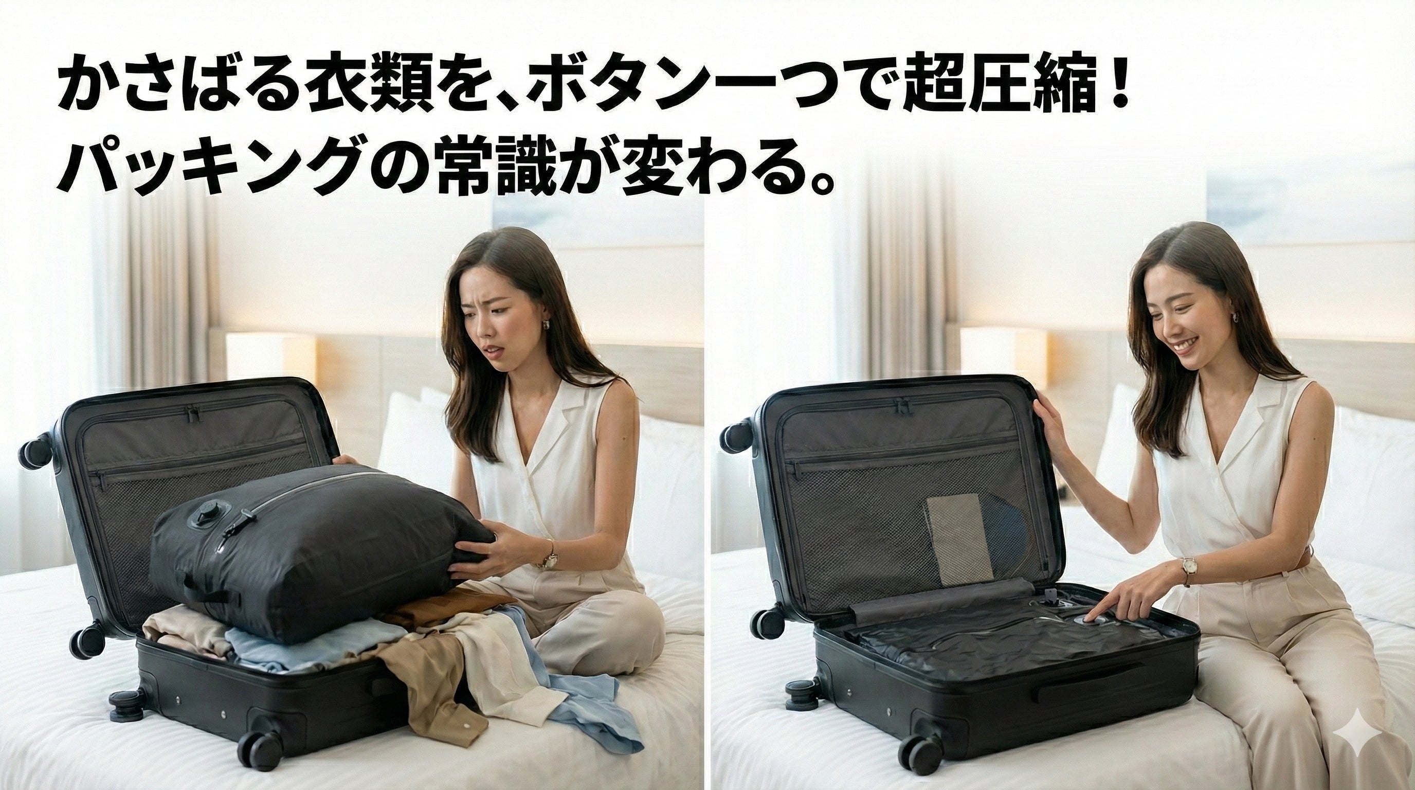 行き先や日数でサイズに悩み、家では保管場所に困る……。 私たちは、これが世界中の旅行者が抱える「長年のストレス」だと気づきました。