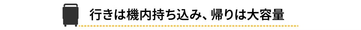 行きは機内持ち込みサイズで、手荷物預けの列をスキップ。チェックインカウンターで待たされることなく、そのまま保安検査場へ直行可能。 空港での貴重な時間を無駄にせず、誰よりもスマートに旅をスタートできます。