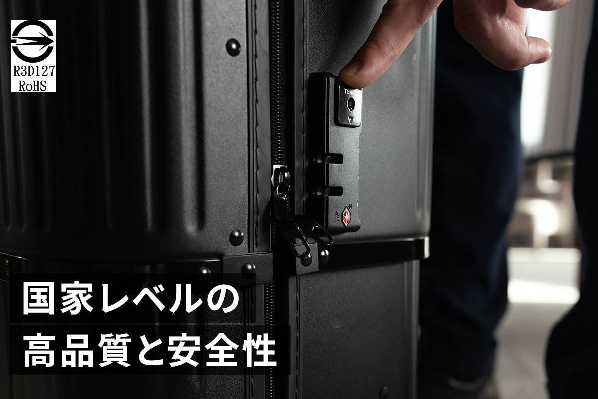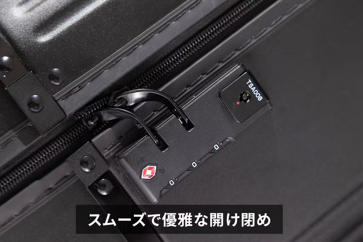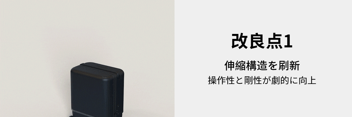 サイズ変更の要となる、スーツケース内部のロックパーツ(留め具)を新仕様に変更しました。サイズ拡張後にボディを内側からガッチリとロックすることで、可変式特有の「ズレ」や「グラつき」を防止。まるで1枚のハードケースのような、頼もしい一体感と強度を確保しています。