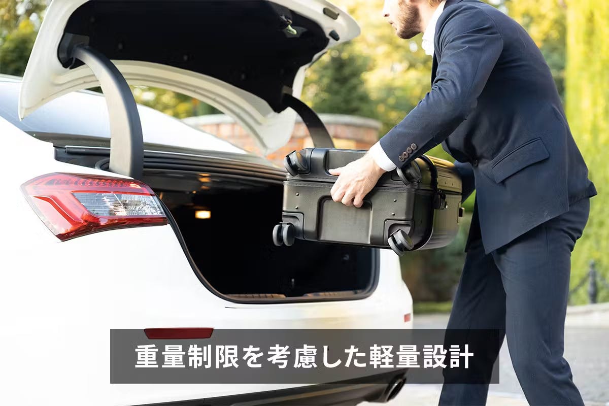 多機能・高耐久なのに、驚くほど軽い。最大72Lのハードケースに、複雑な可変ギミックを搭載しながら、重量はわずか4.7kgを実現。 耐久性と機能性を極限まで追求しつつ、持ち運びの負担にならない軽量化に成功しました。
