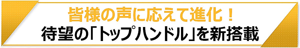 「車のトランクや棚に上げる時、少し持ちにくい…」 ——その唯一の弱点を克服するため、第3世代『VELO Hyper X Prime』には、皆様待望の**「トップハンドル」**を新搭載。