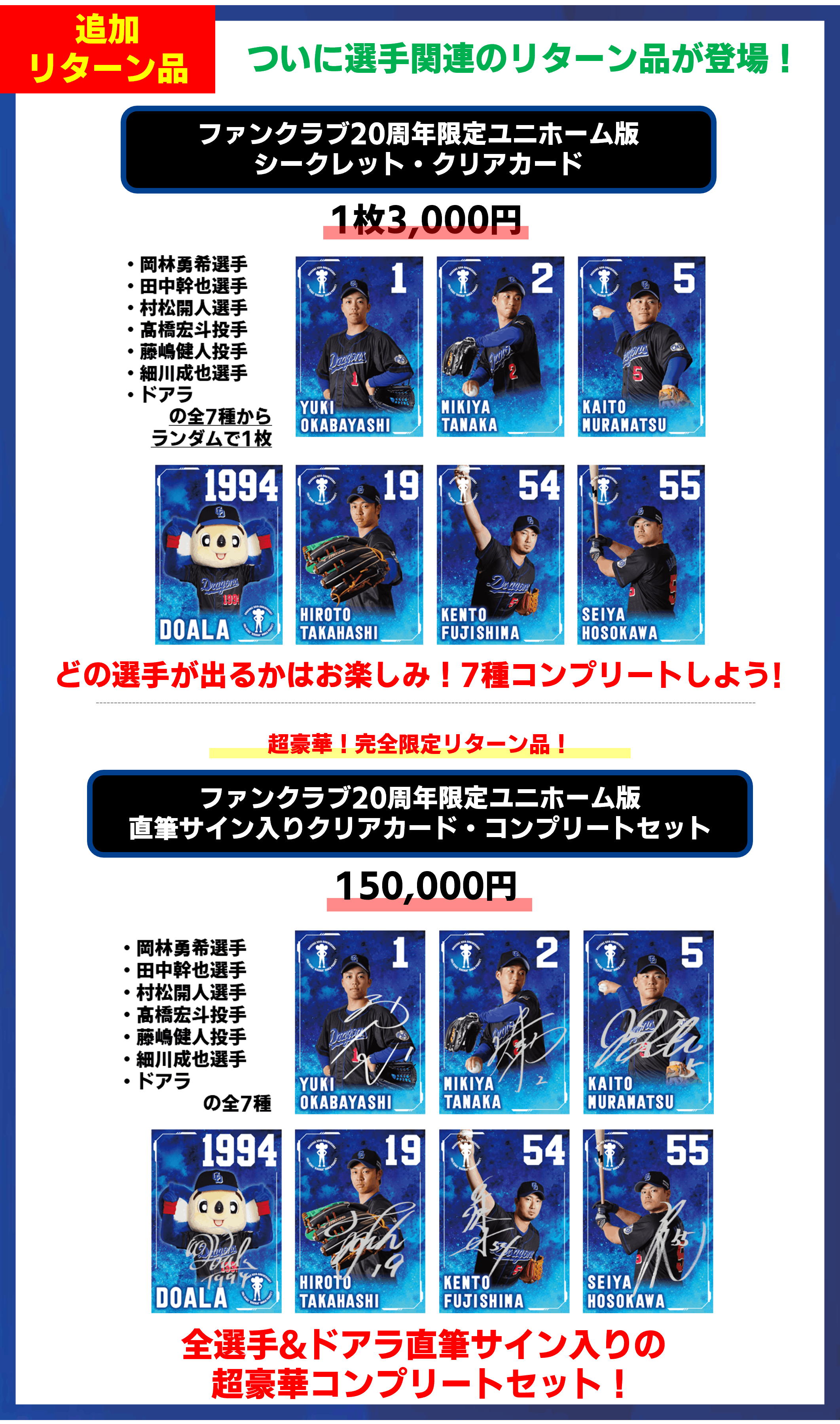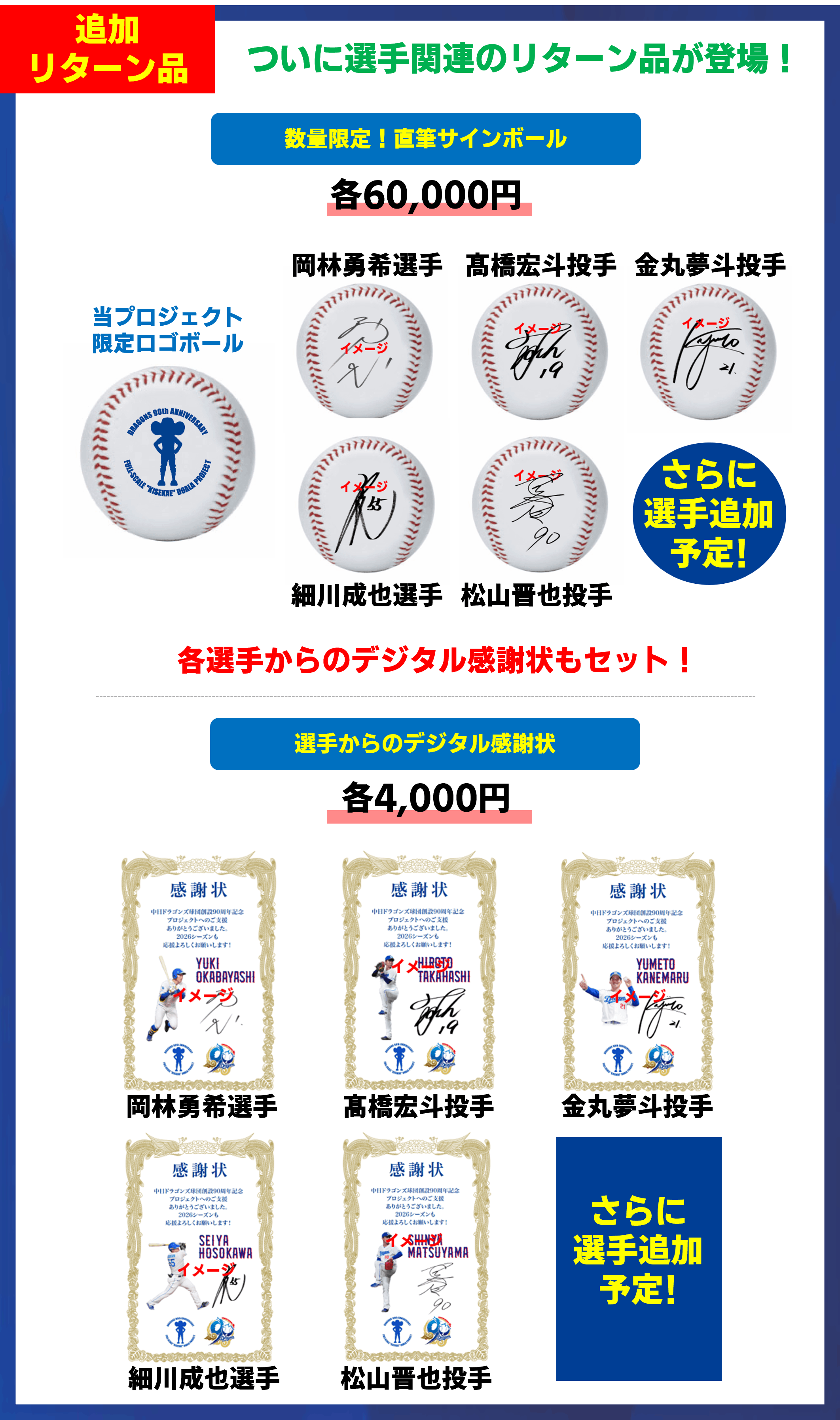 なお、ついに直筆サインアイテムなど今回限定の豪華選手関連のリターン品も追加しました!(12/19更新)