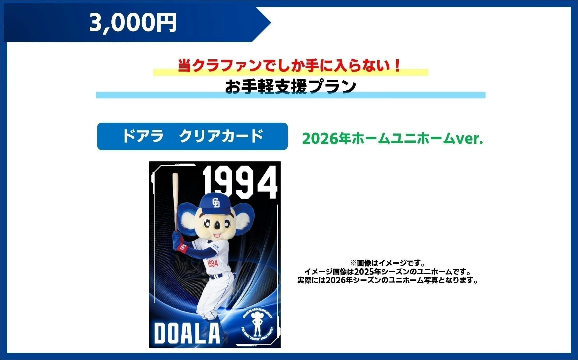 2025/12/19 17:29プロジェクトスタート以降、多くのご支援ありがとうございます。おかげ様で第一次目標は早期に達成し、等身大「着せ替え」ドアラの製造も順調に進んでおります。先ほど、このプロジェクトをさらに盛り上げるために、NEXTゴールの設定と、追加のリターン品を発表いたしました!ドーム以外でもフォトスポット等として設置できる1/2スケールのモニュメントの製作に加え、オープン戦のホーム初戦である3月1日(日)vs横浜DeNAベイスターズを「等身大着せ替えドアラお披露目デー」としてイベント開催いたします。また、このNEXTゴールの設定にあたり、ついに!選手関連のリターン品もご用意いたしました。超豪華・直筆サイン入りアイテムだけでなく、気軽にご支援いただけるプランもございます。是非、引き続きプロジェクトへのご支援・ご注目をいただけますと幸いです。なお、このプロジェクトを通じてファンの皆様へスペシャルな体験を提供できればと思い、3月1日(日)に開催するお披露目デーに関する特別なリターン品を準備中です。こちらも次回発表にご期待ください!等身大「着せ替え」ドアラプロジェクト担当者一同 もっと見る