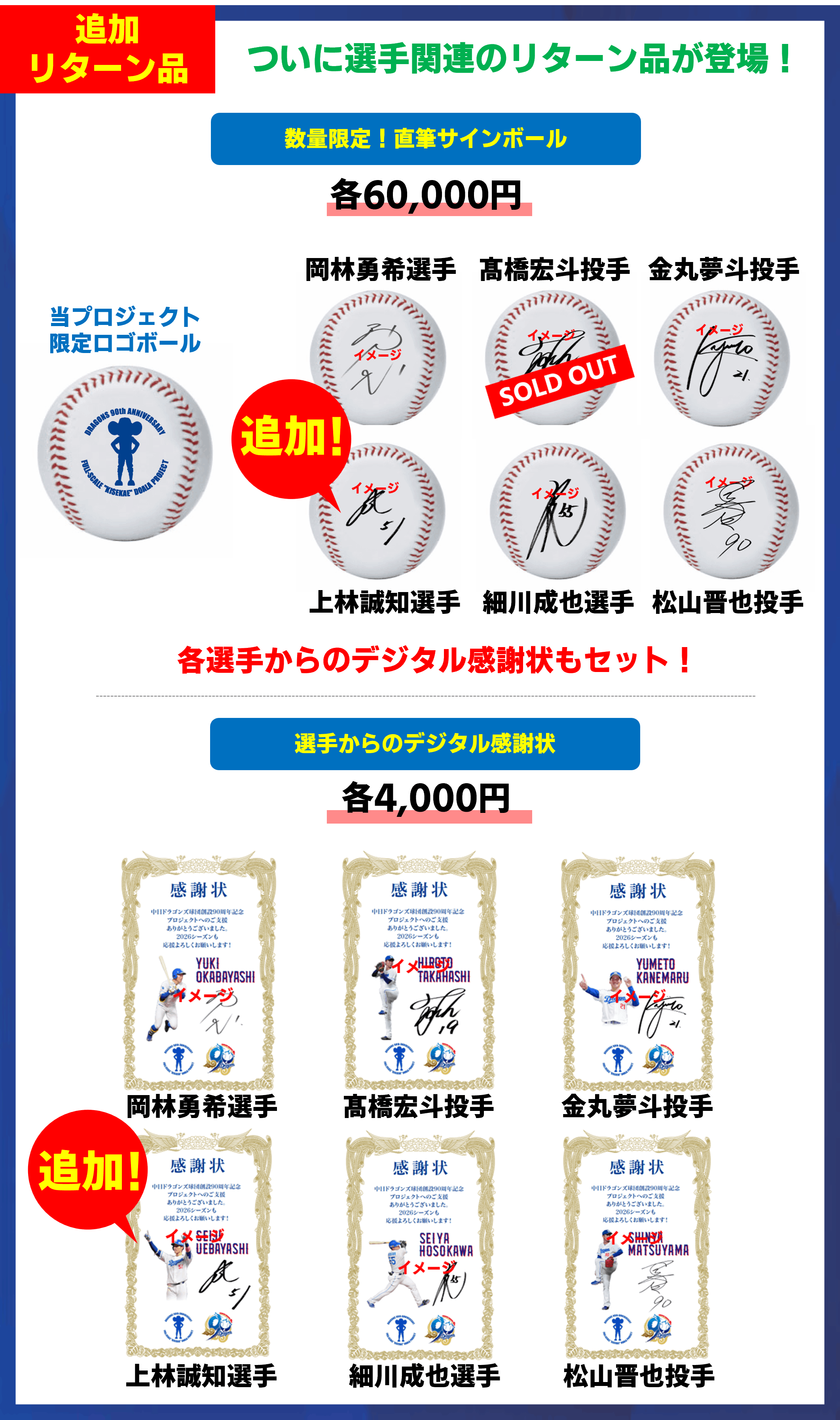 なお、ついに直筆サインアイテムなど今回限定の豪華選手関連のリターン品も追加しました!(12/19更新)