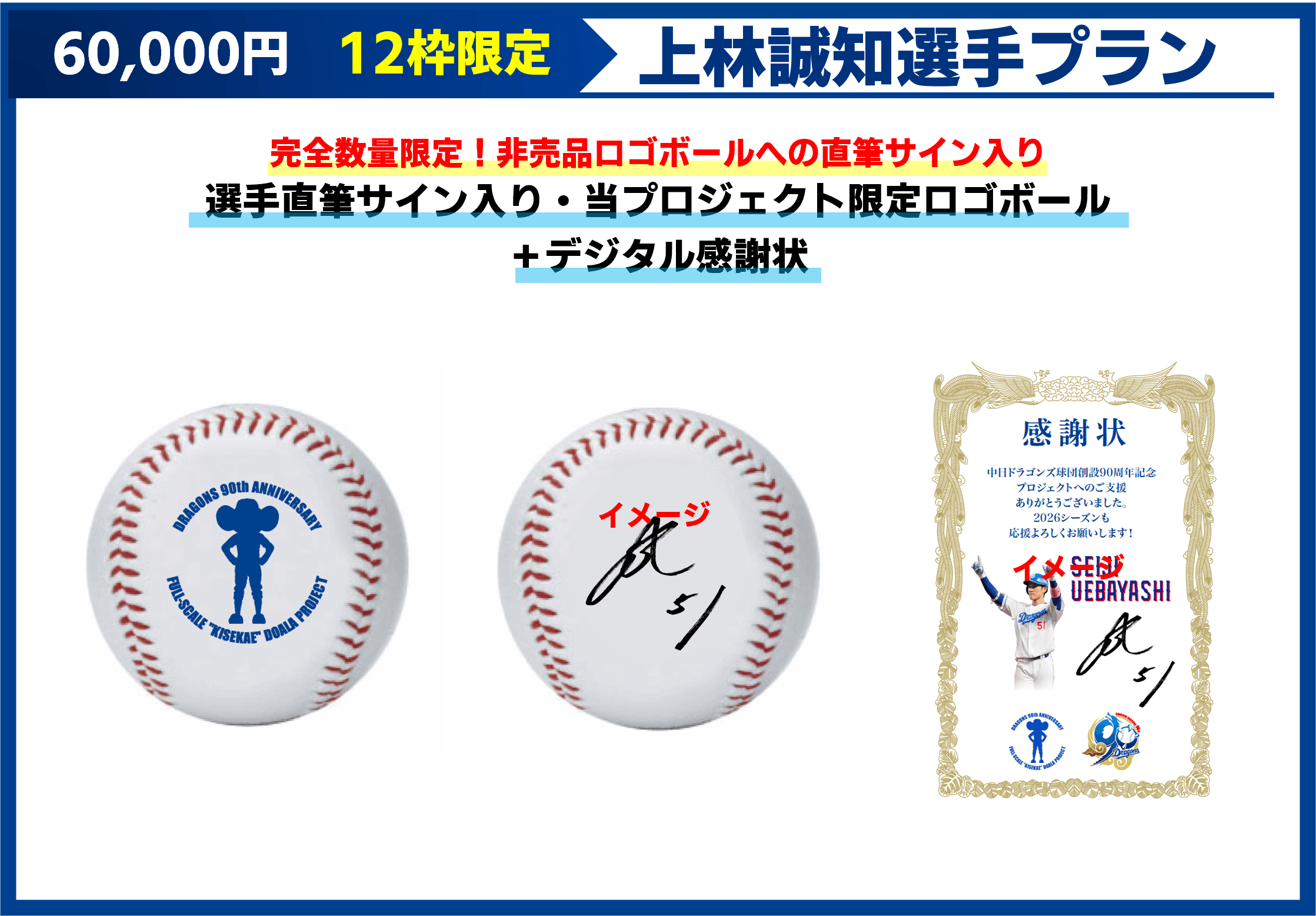 ユニホームのシワまで忠実に再現した1/4スケールのフィギュアなど全部のリターン品や、ドアラとの記念撮影など特別イベントを盛り込んだ50万円プランから、お手軽に支援していただける1994円のプランまで、すべてのドラゴンズファンの皆様に支援していただけるようプランを充実させました。