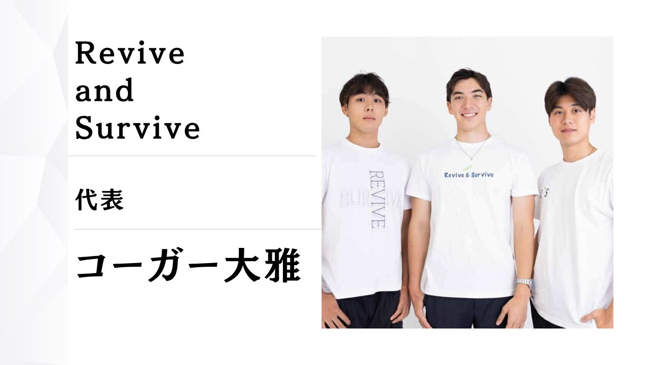 こんにちは。「Revive and Survive」代表のコーガー大雅です。