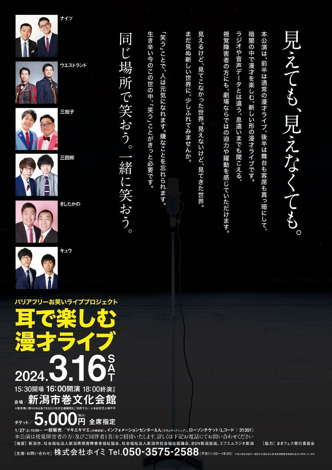 視覚障害者も健常者も観客全てが同じ環境において漫才を楽しんでいただくという、