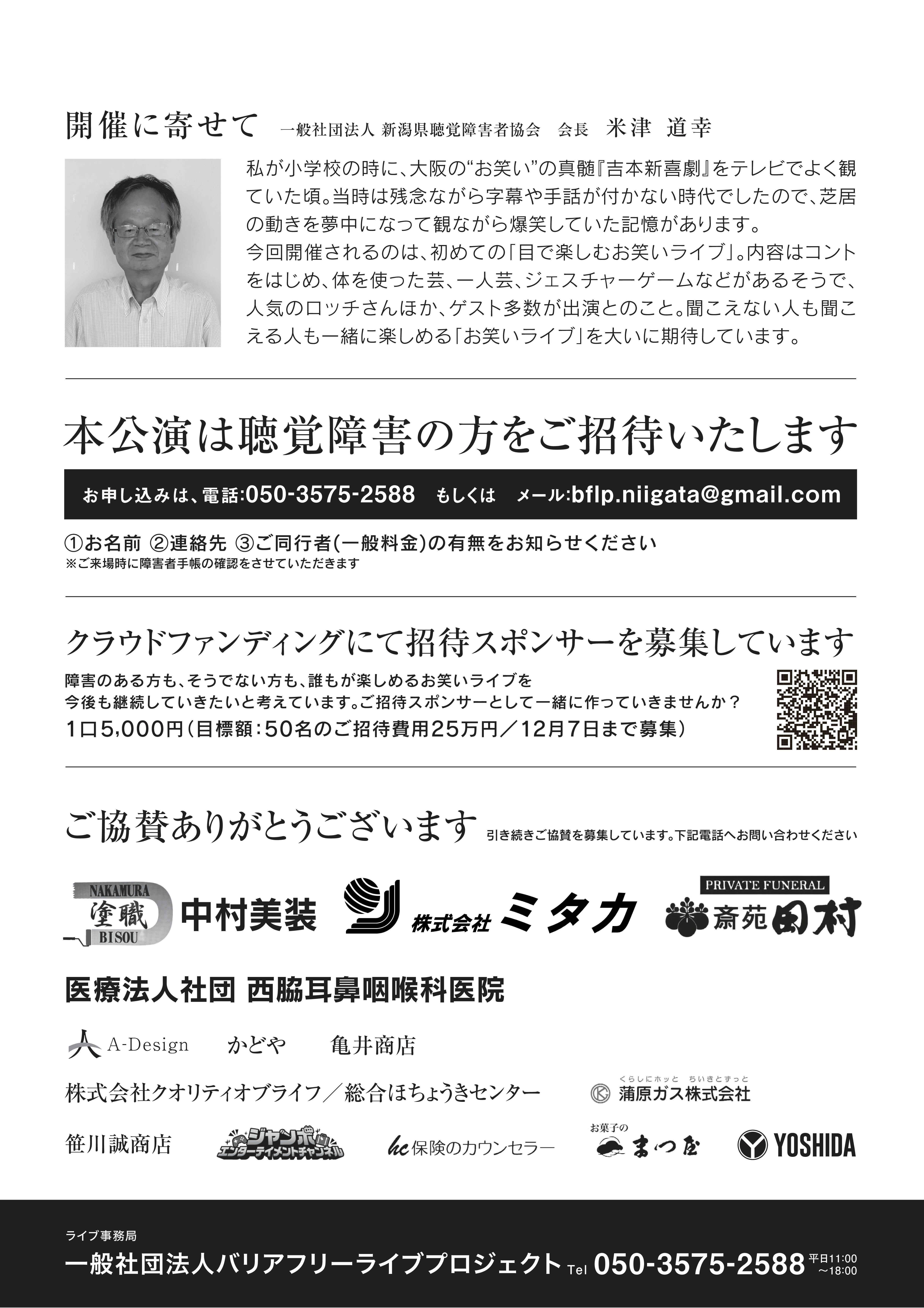 今度は聴覚障害の方にもぜひ生のお笑いで笑っていただきたいと願っています。