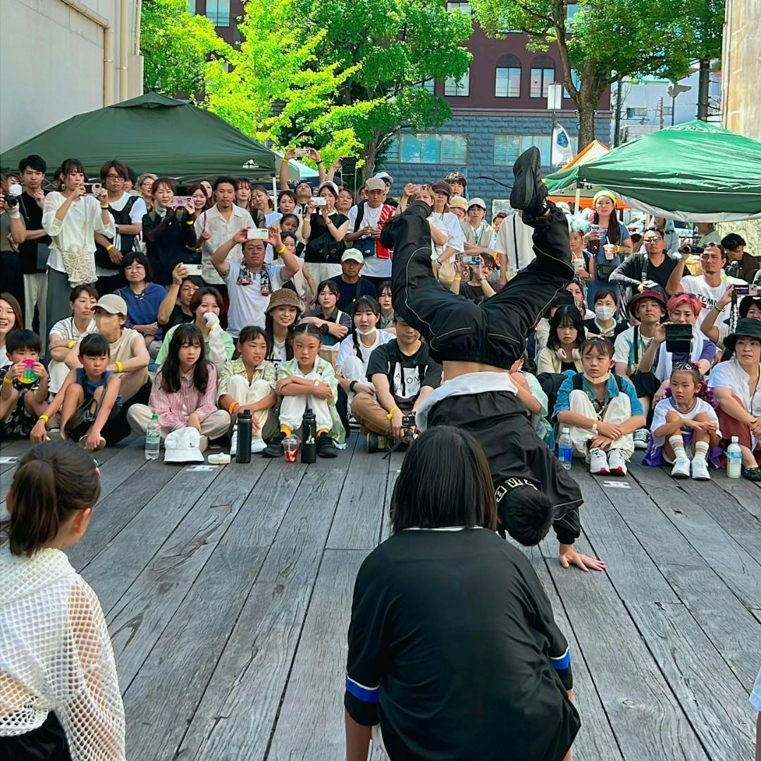 毎年200〜300人以上の来場者が集まり、地元のキッズから中高大学生、そして関西を代表するトップダンサーが一堂に会するステージは圧巻。ダンスと音楽が一体となり、観る人も踊る人も心から楽しめる場をつくってきました。観覧は無料。家族や仲間と気軽に訪れ、笑顔と熱気に包まれる時間を誰もが共有できます。