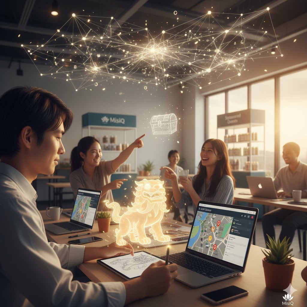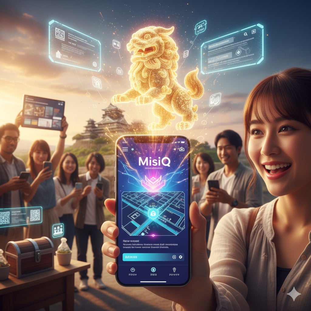 MisiQは、スマートフォンをかざすだけで街並みや歴史的遺跡、静かな海辺までもが宝探しの舞台に変わる、新しい観光DXサービスです。観光客はまるでRPGの主人公になったような没入感を体験でき、地元店舗や施設は「宝探しの目的地」として新しい来訪者を獲得できます。