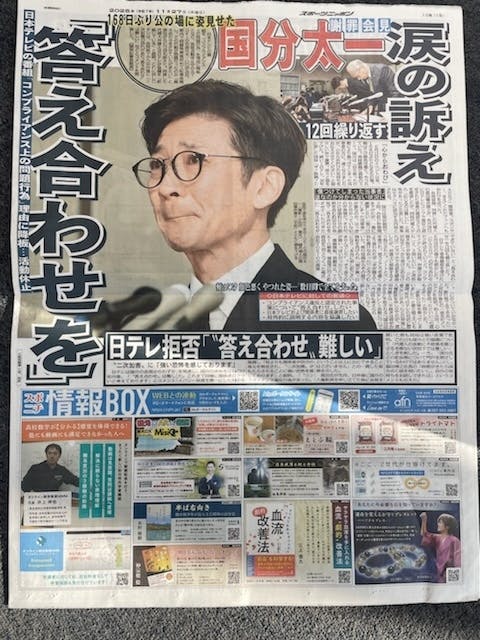 スポニチ広告担当の方より、紙面そのままの写真を掲載して良いと許諾いただきましたので、添付画像として共有いたします。