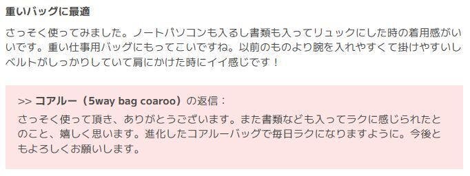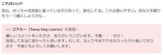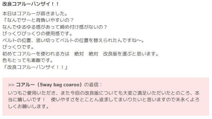 今日は、今回のプロジェクトで紹介中の改良版のコアルーバッグ「リュックライク・コアルー」に寄せられたレビューをご紹介します。