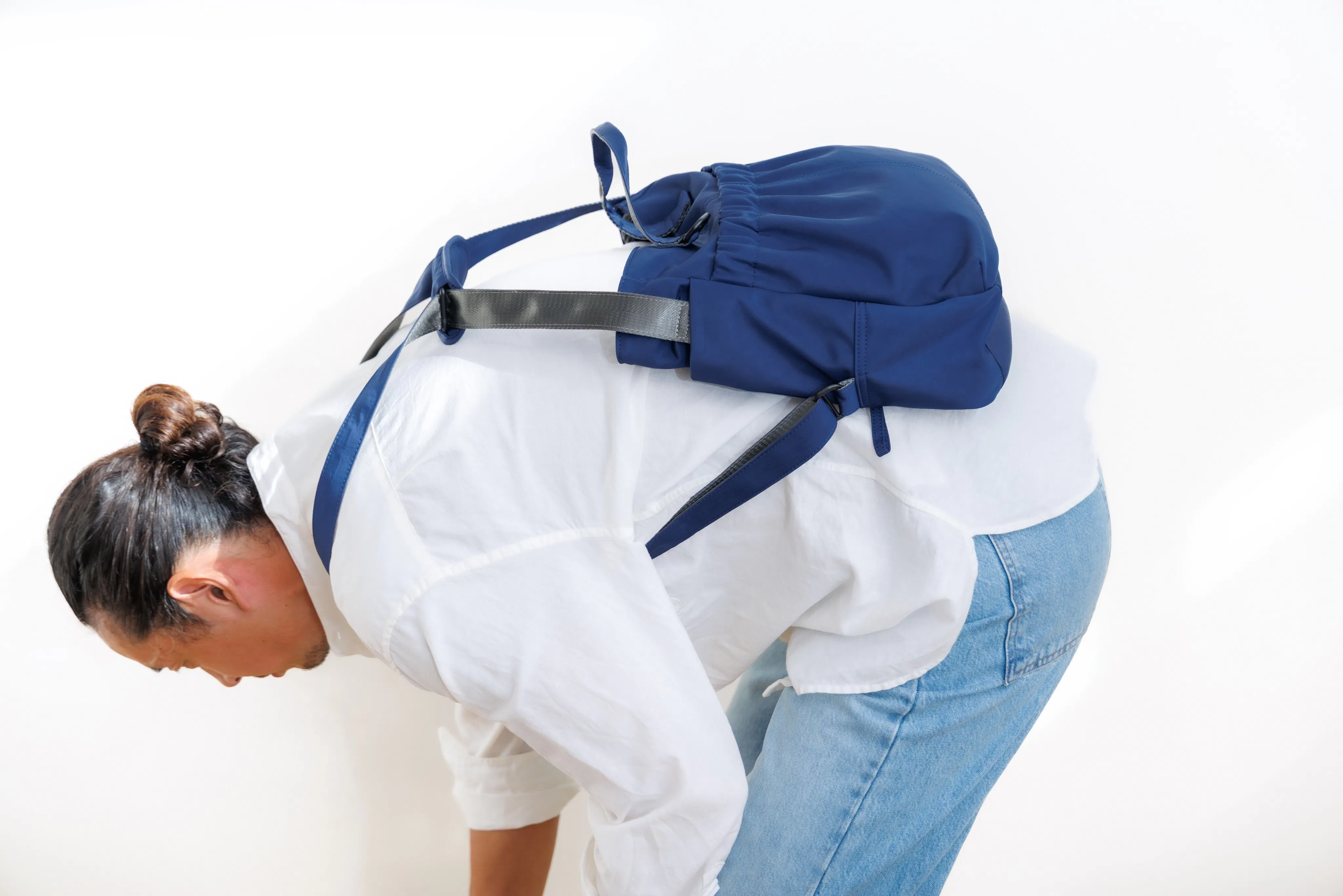 最初はリュックに変身するところに惹かれてお求めになった方も、共通してこの「前抱え」に感心されます。その理由は共通して、軽く感じるし安心感があるから。
